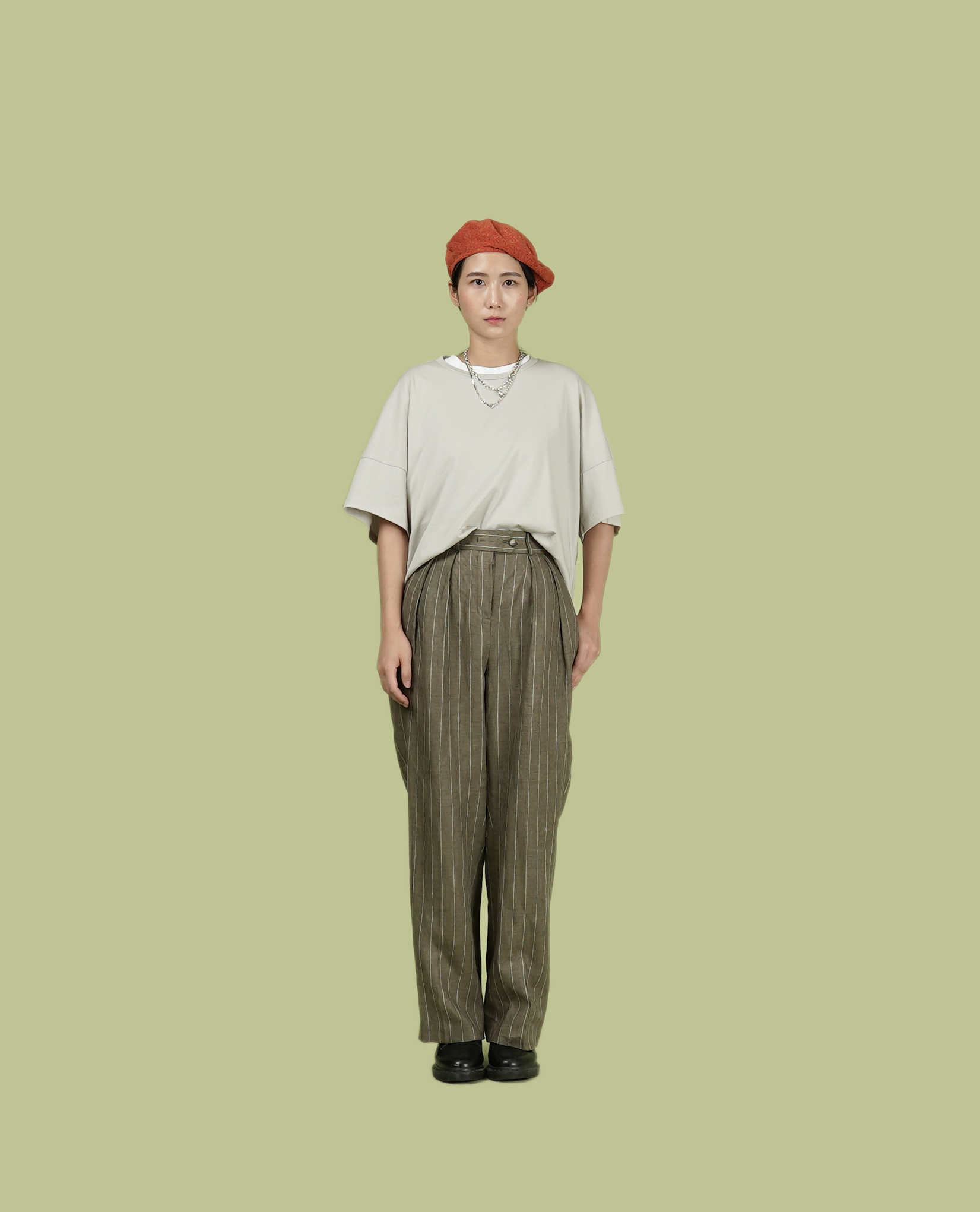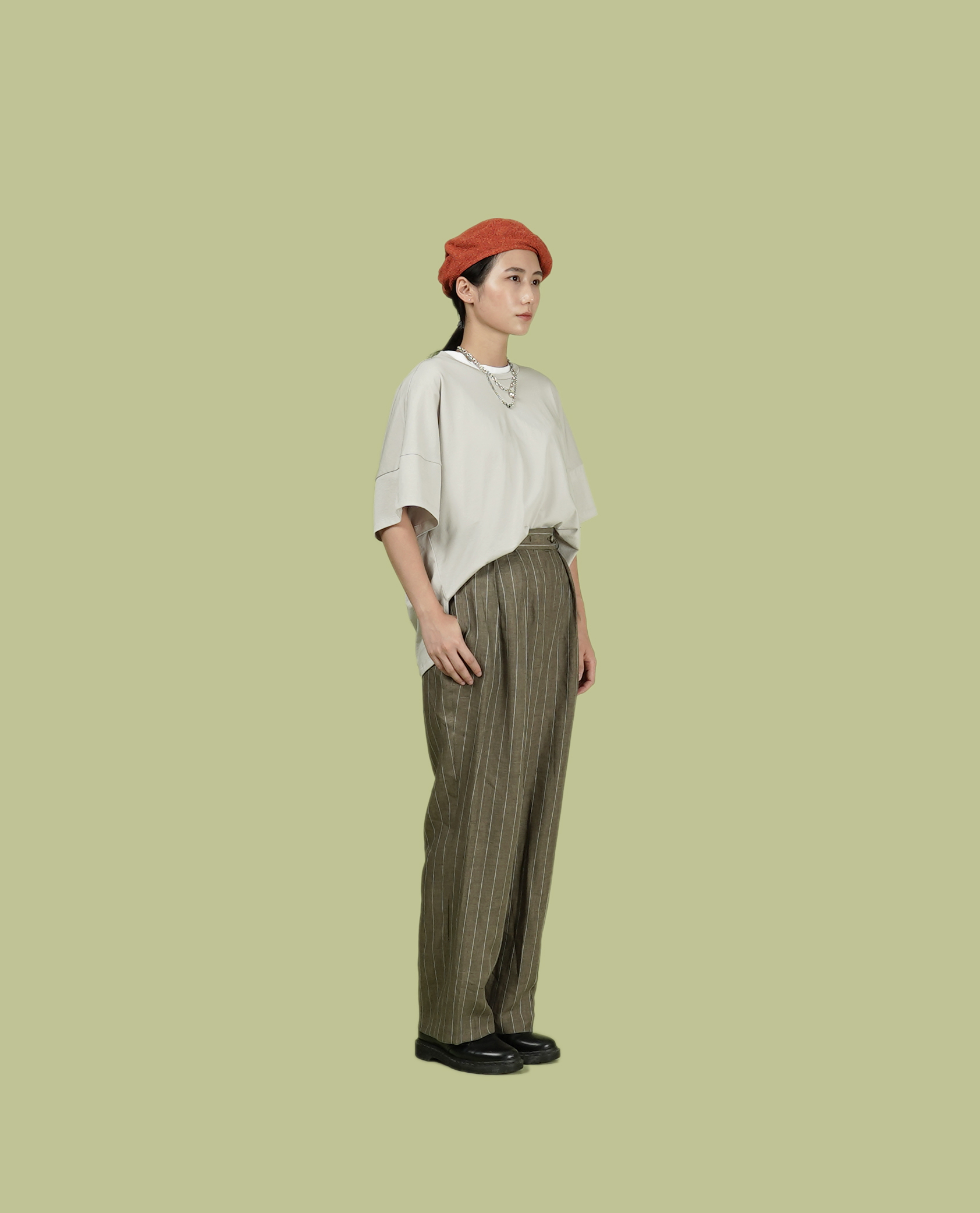 *看 Model 上衣:開衩前短後長t、歐波医生水洗側拼接羅紋半袖t
