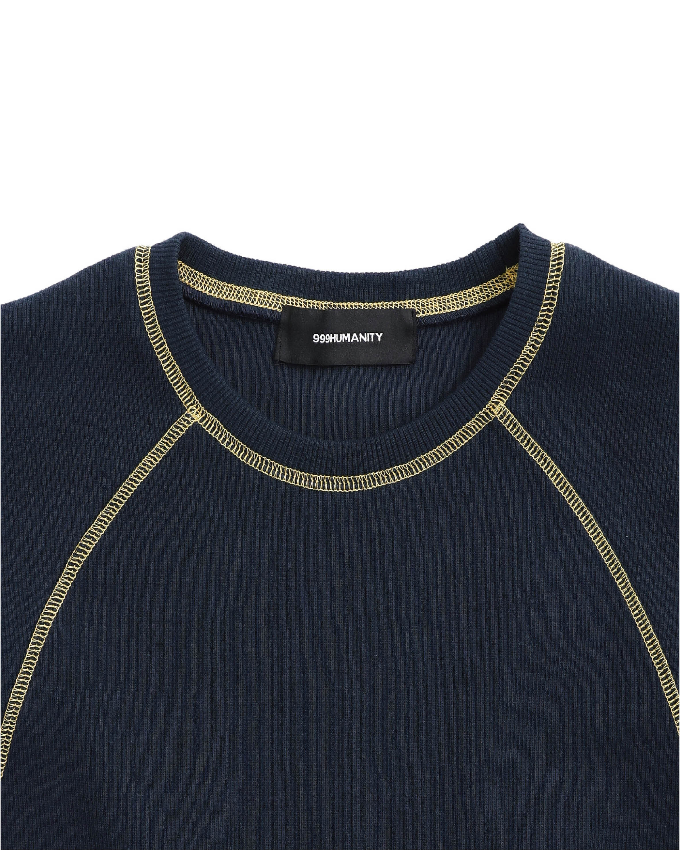 999HUMANITY COLORED STITCH LINE SHORT SLEEVE TEE 設計重點:
