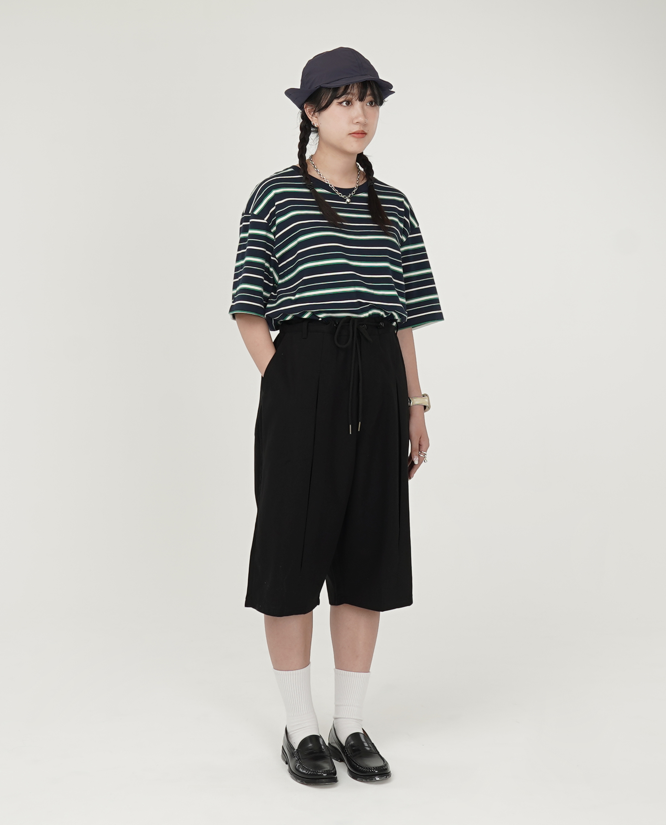 *看 Model 上衣:水洗小領素t、寬短細粗條紋t