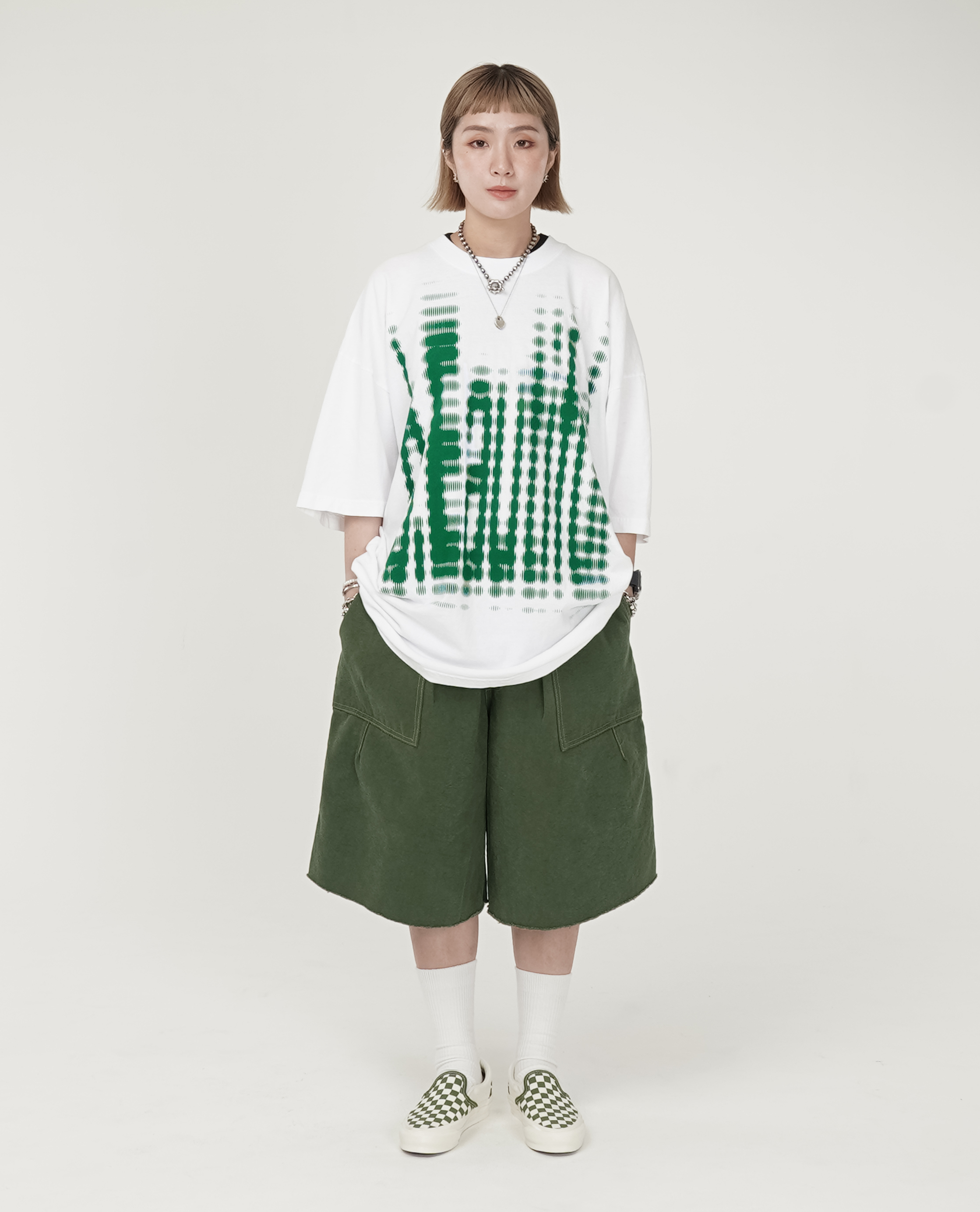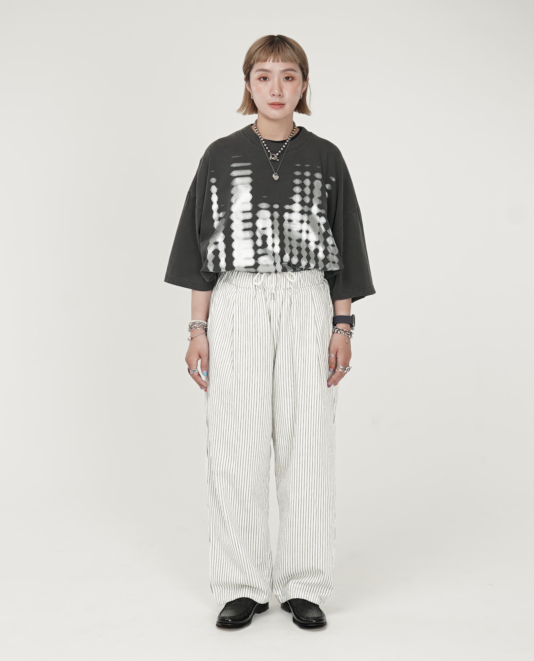 *看 Model 褲子:膝下補釘綁繩褲、大方口袋下不收邊膝下褲、鬆緊直條紋寬直筒褲
