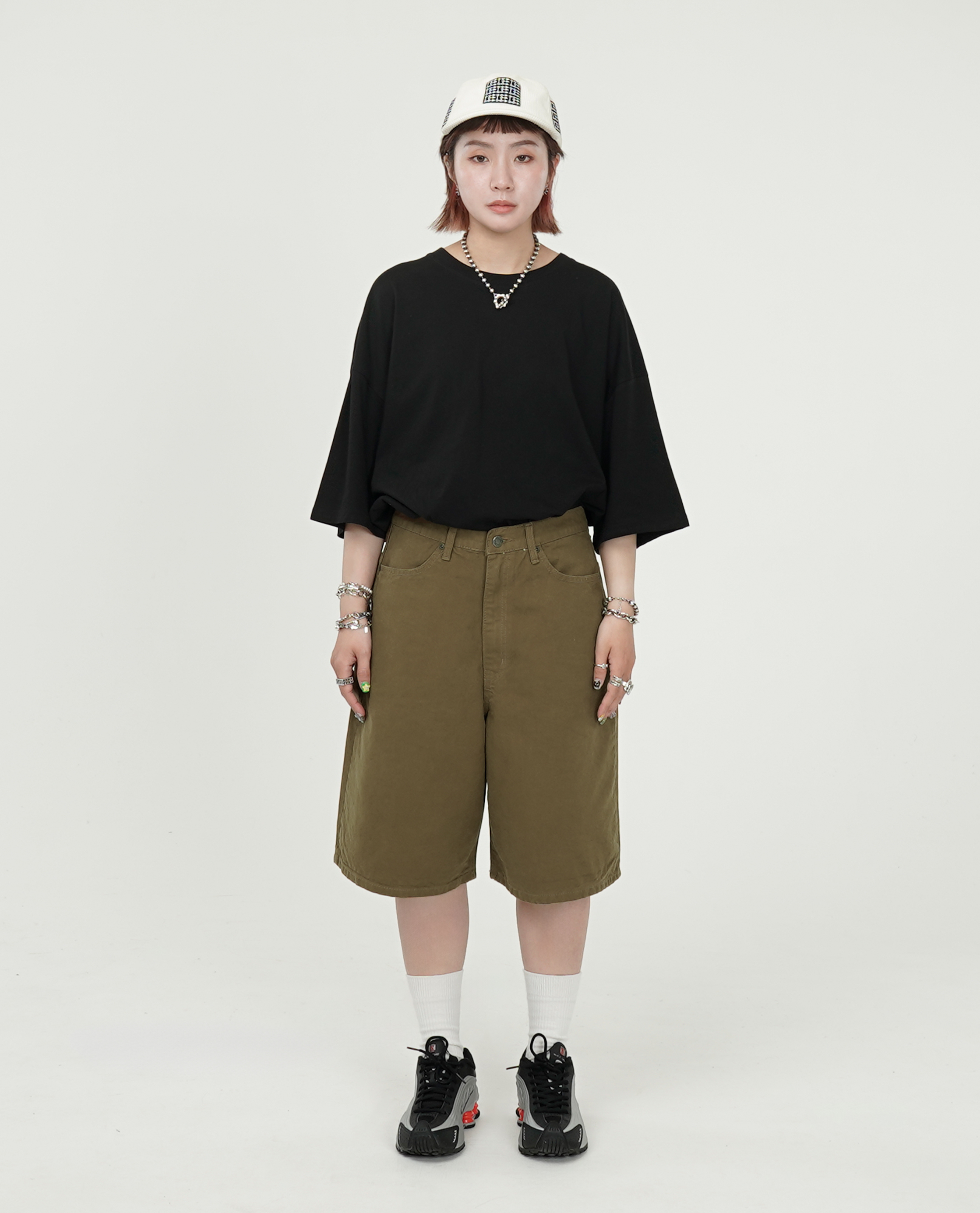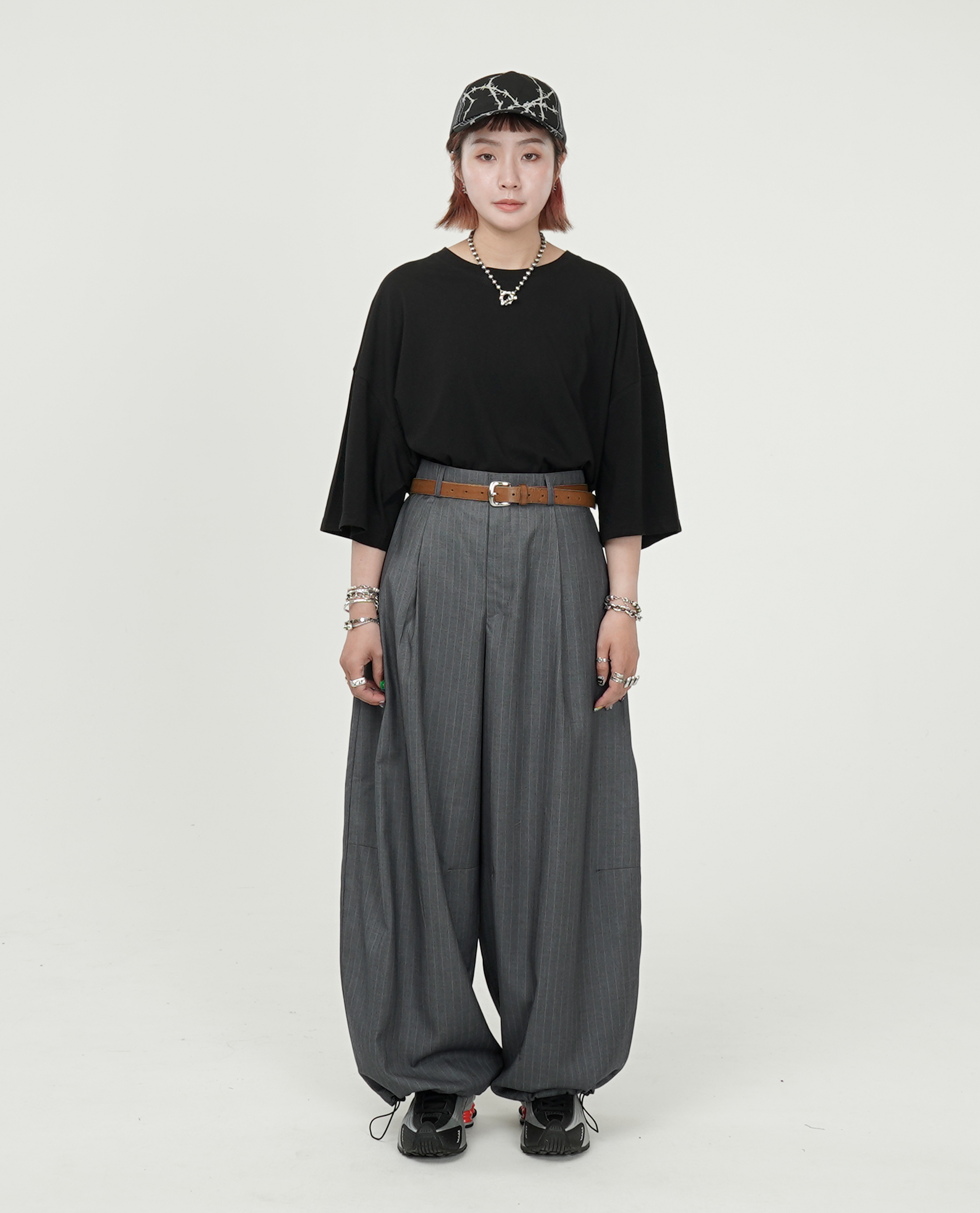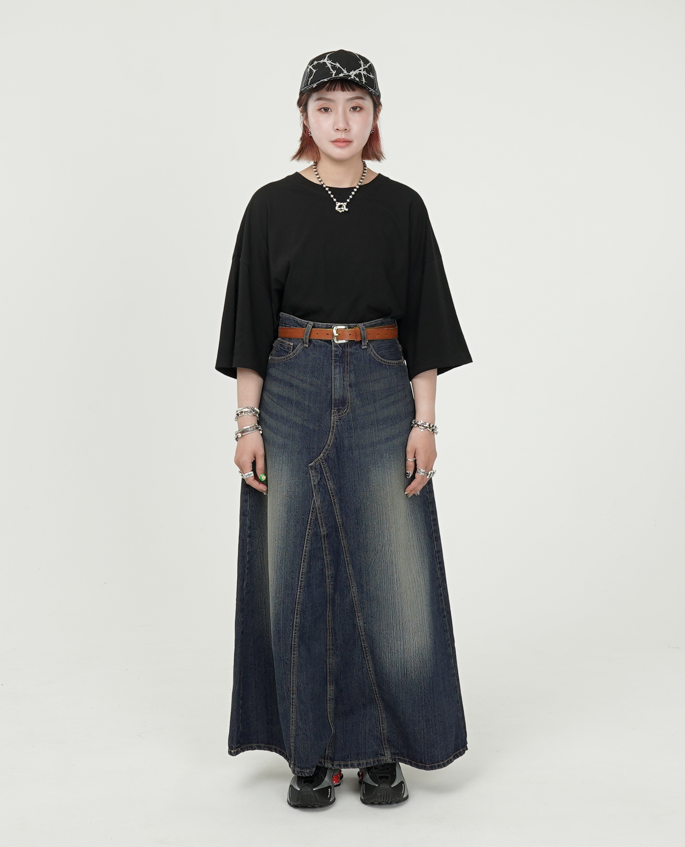 *看 Model 褲子:細直紋下可縮寬西裝褲、落地A字刷色牛仔裙、摩卡膝下褲