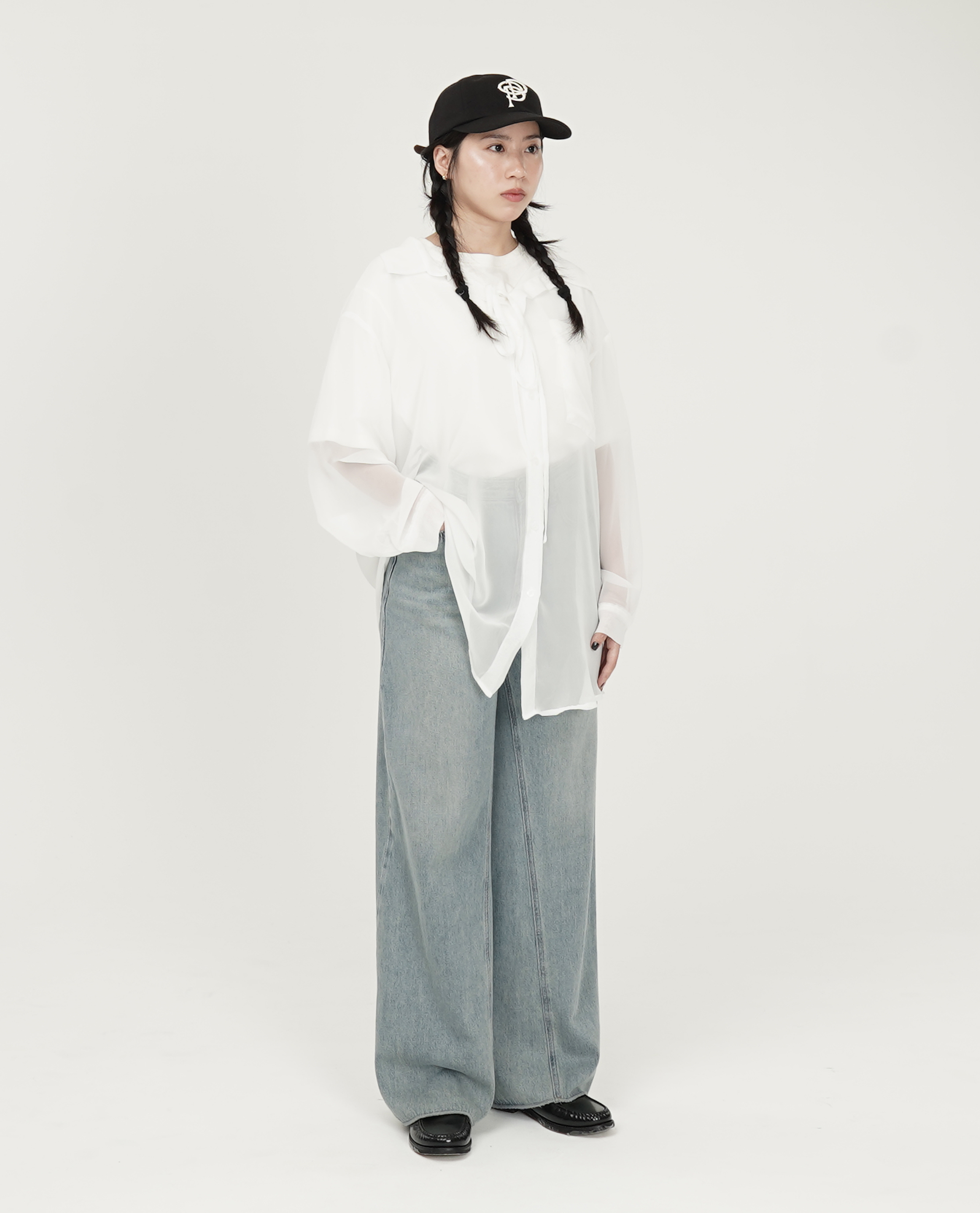 *看 Model 上衣:小領洞洞背心、POP TRADING COMPANY Pop Mercury T-Shirt - 24SS、細綁繩半透襯衫