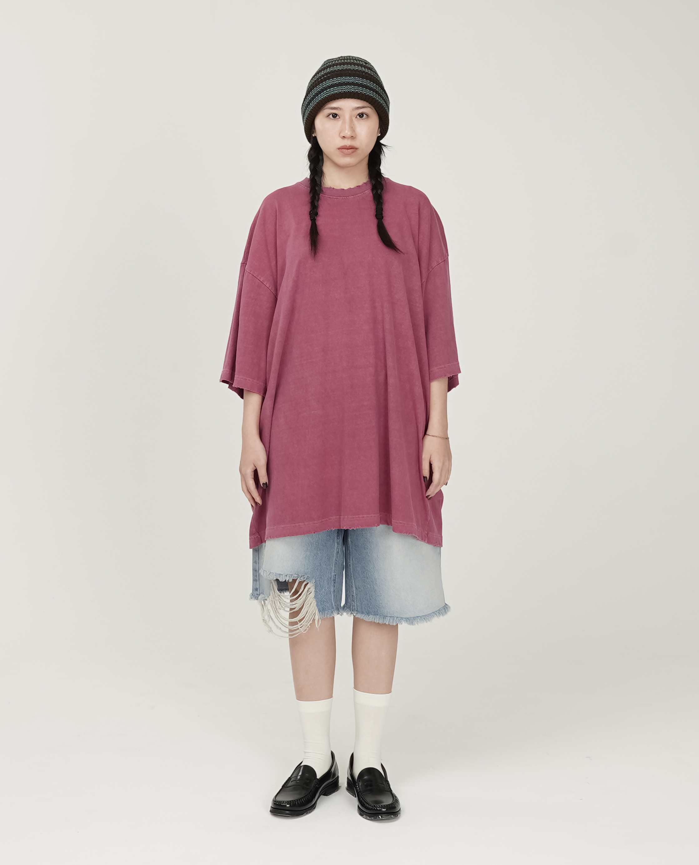 *看 Model 褲子:單邊刷破膝下牛仔短褲