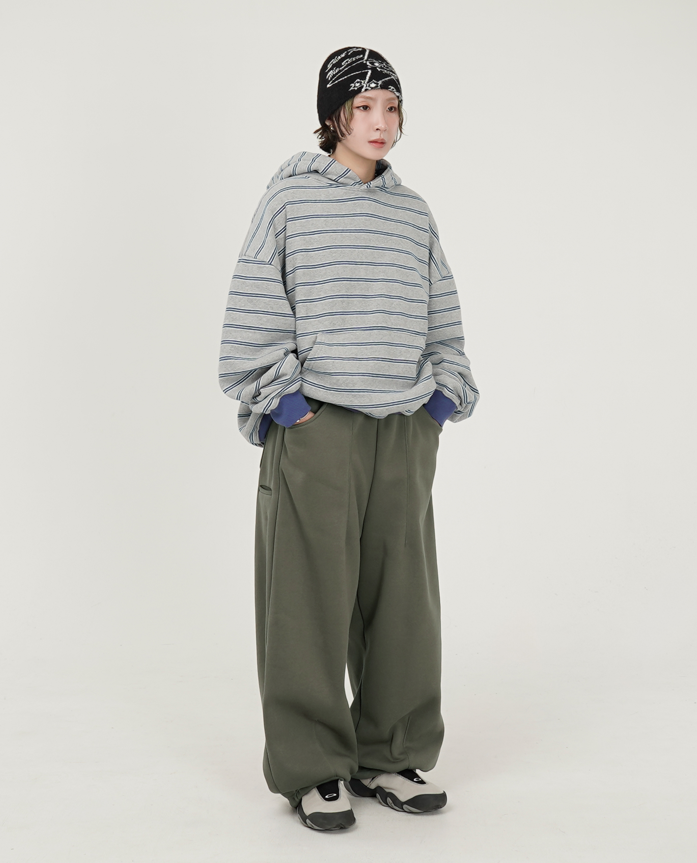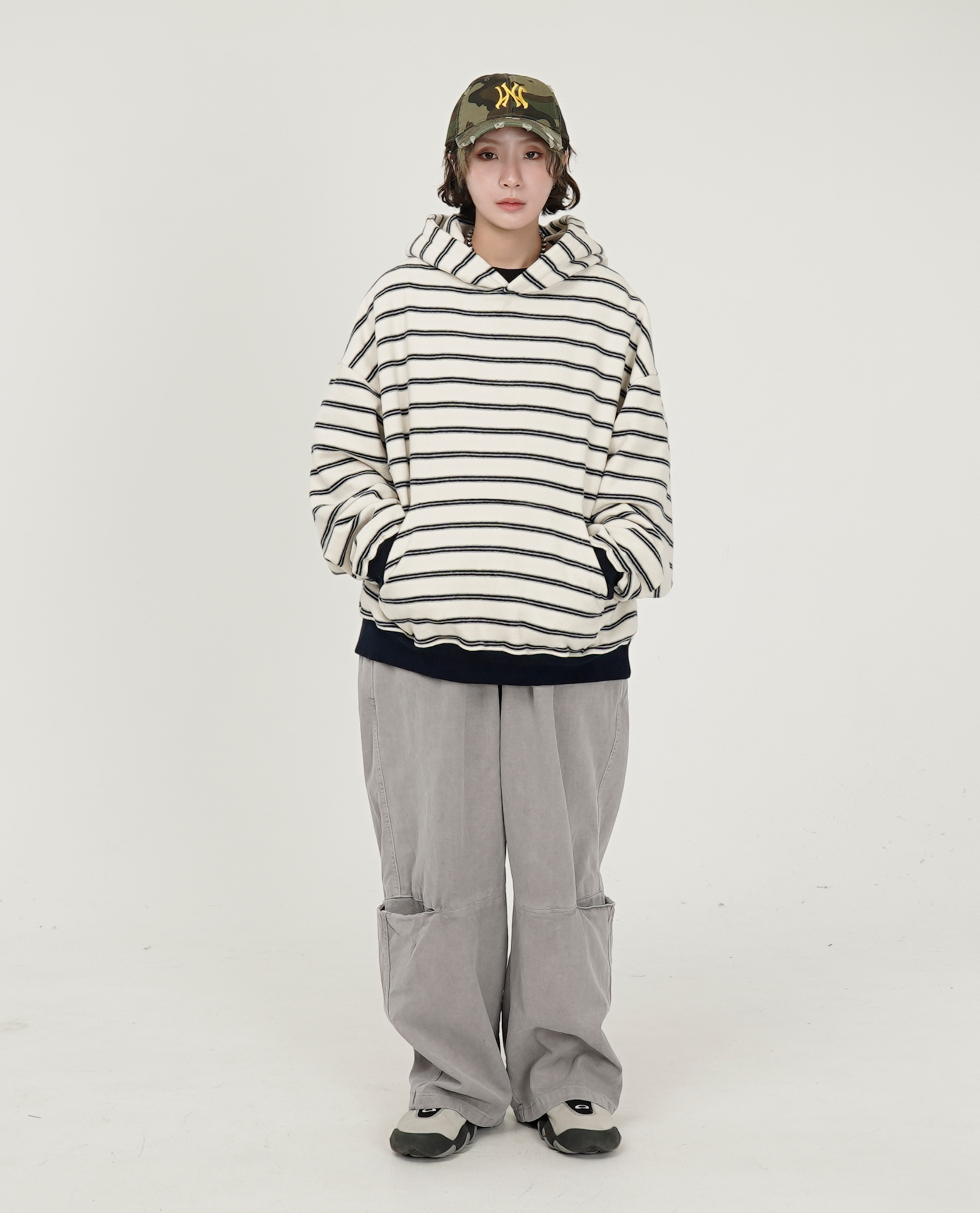 *看 Model 褲子:水洗綁繩膝切口口袋直筒褲、內綁繩寬棉褲