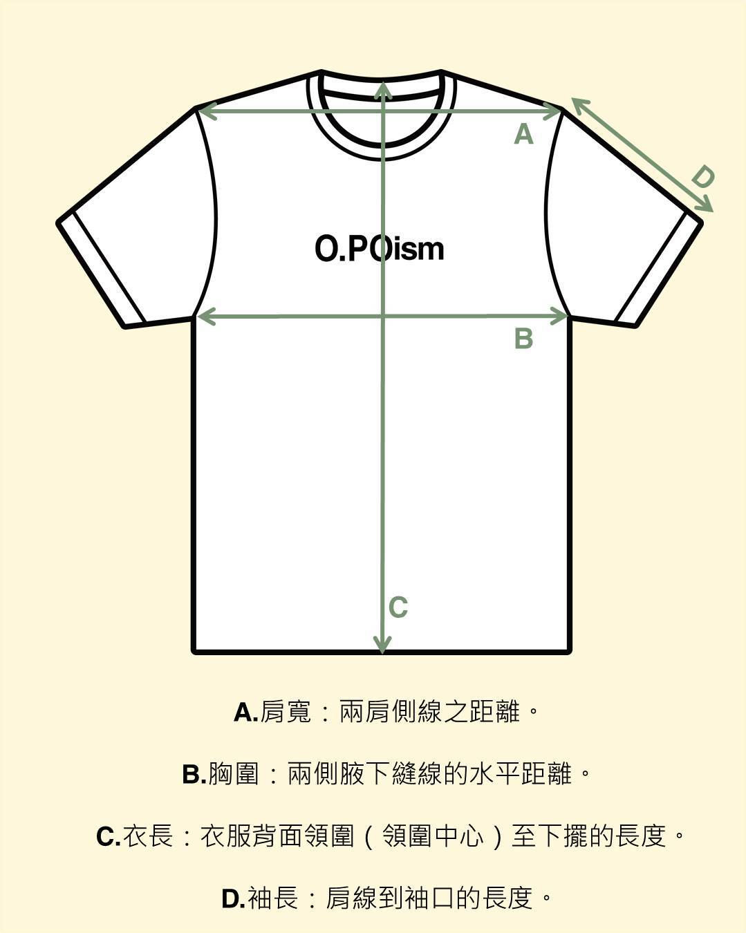 | A. 肩寬 | B. 胸圍 | C. 衣長 | D. 袖長 |