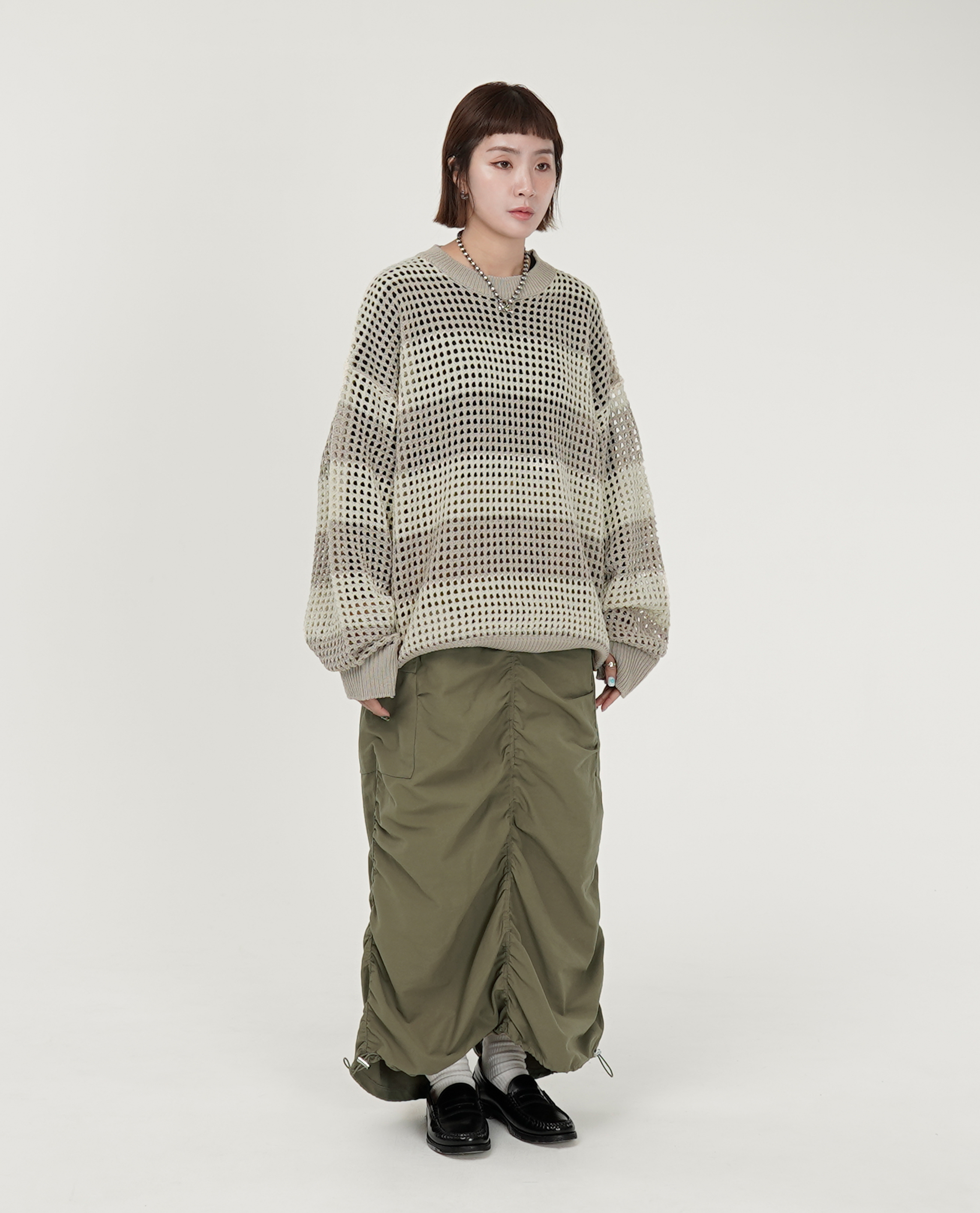 *看 Model 褲子:高腰抓皺下可縮工作長裙