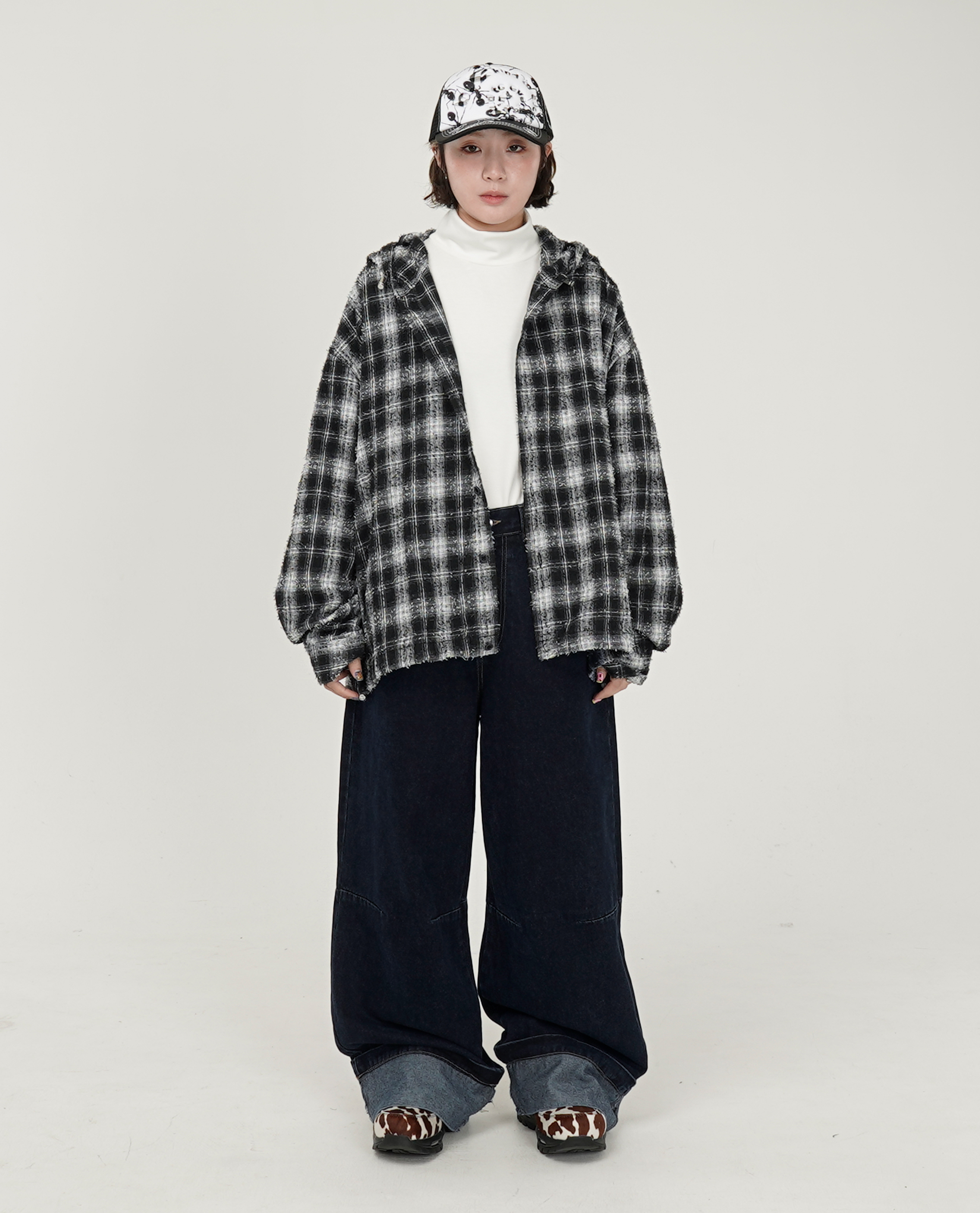 *看 Model 褲子:大反摺落地可調腰牛仔、鬆緊腰抓絨下縮口褲