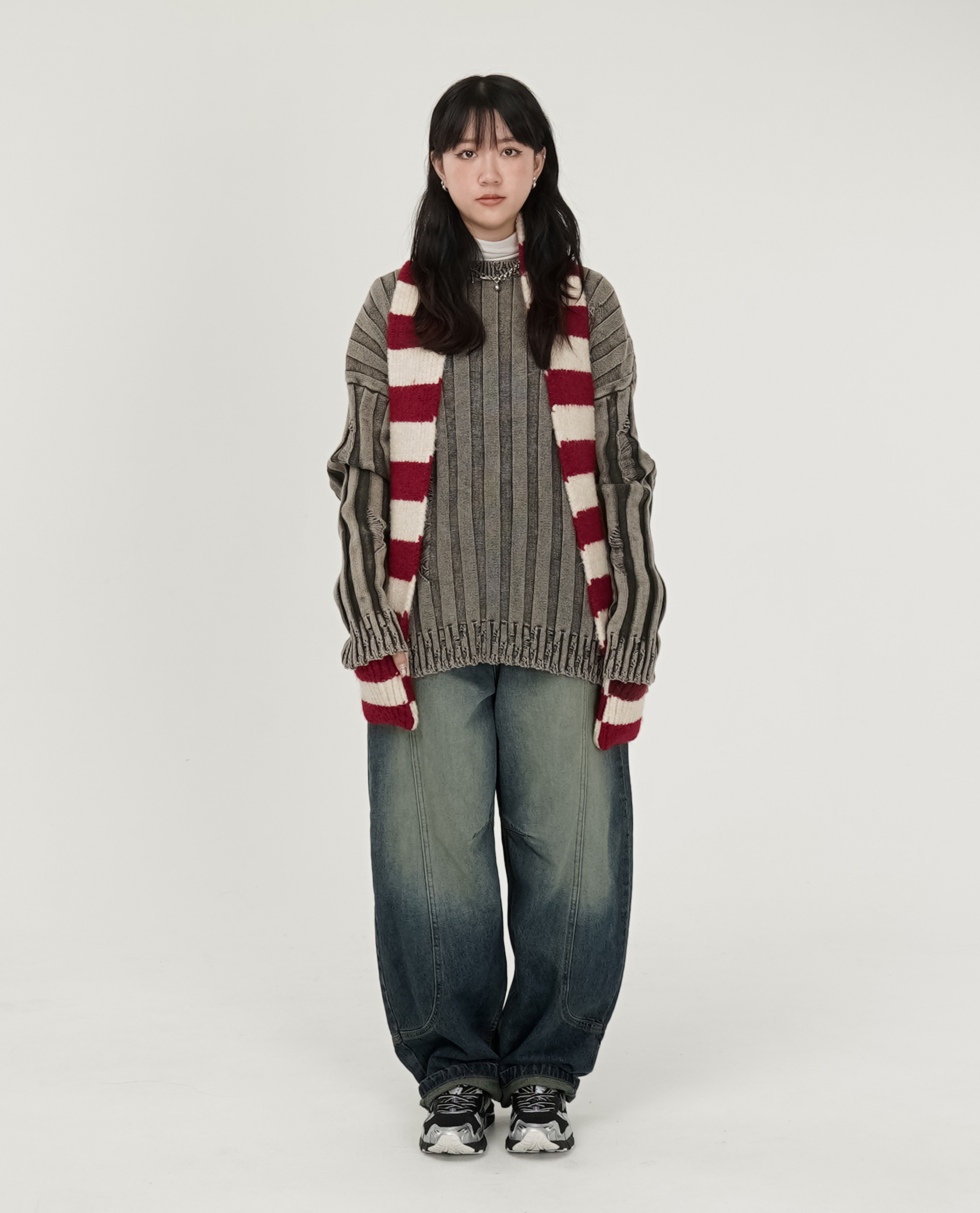 *看 Model 褲子:木耳長裙、刷白大弧形膝車線牛仔