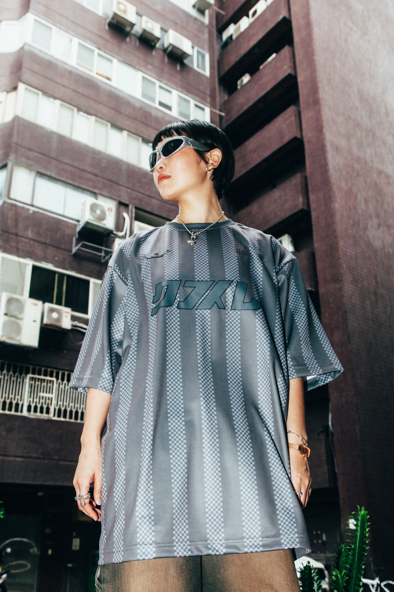 DEMARCOLAB THE SPONSOR GAME SHIRT 設計重點:雙層針織機能面料 / 吸濕快乾、抗 UV 特性 / 滿版格紋花紋 / 印刷圖騰搭配電繡字樣