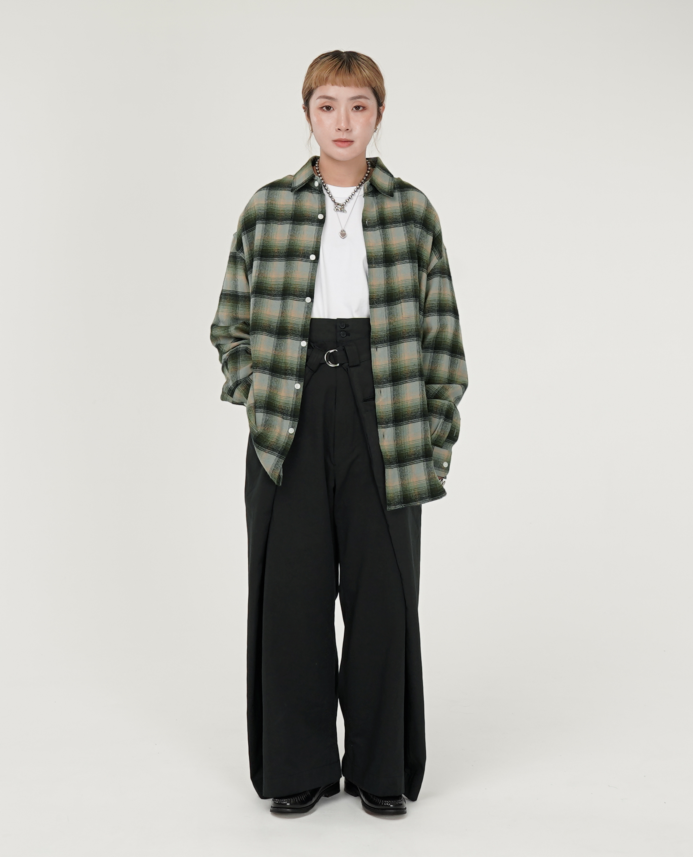 *看 Model 褲子:側左右刷白寬直筒牛仔