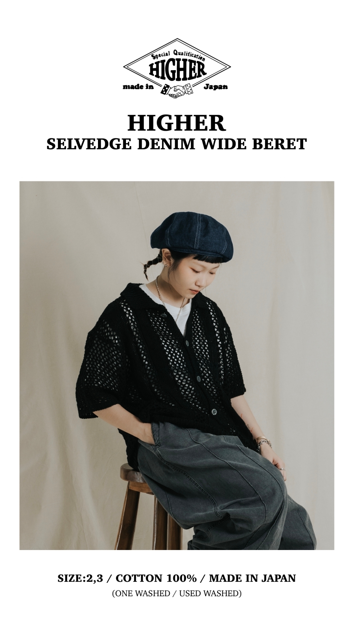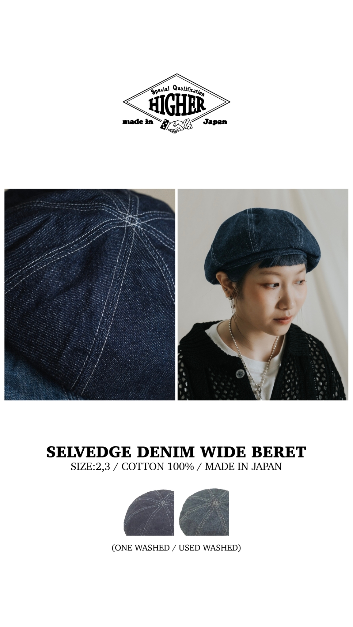 HIGHER SELVEDGE DENIM WIDE BERET - 24SS