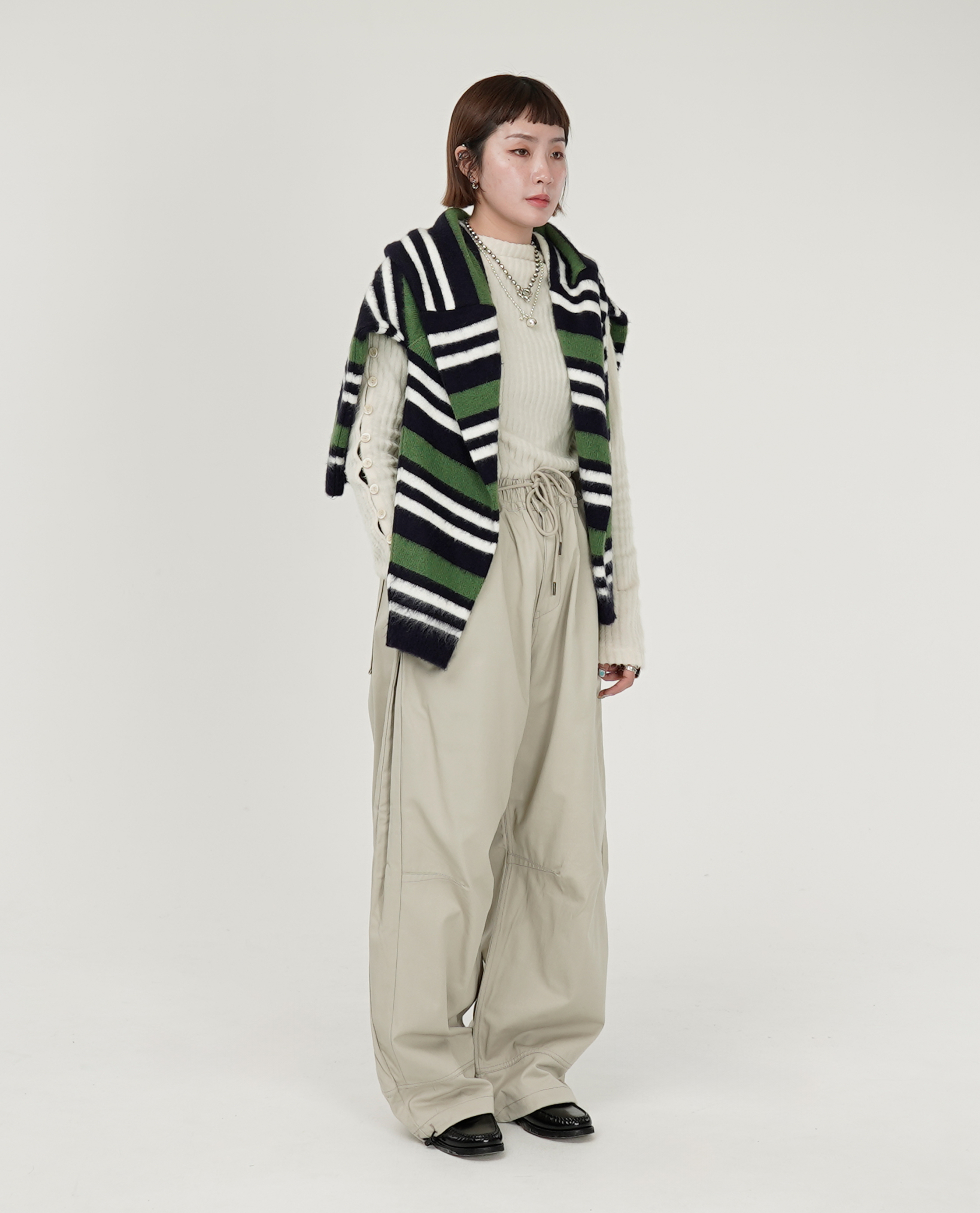 *看 Model 褲子:鬆緊弧形車線直筒棉褲、側開衩寬直筒下可縮褲、格紋鬆緊拼接長裙