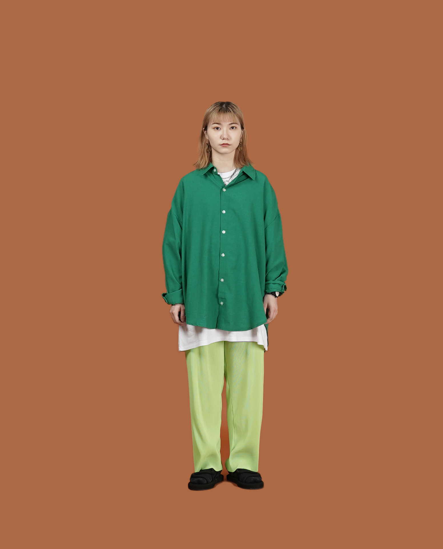 *注意事項*:綠布料顏色較淺,建議穿著淺色貼身衣物或長版上衣修飾。