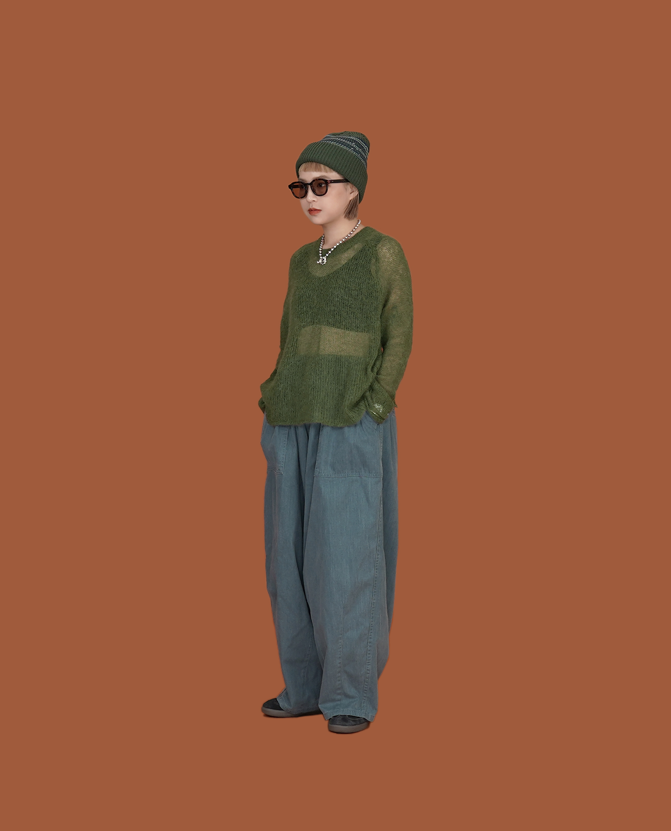 *看 Model 上衣:歐波医生十字布花洞洞背心、小領透薄料針織上衣、下可縮斜口袋大學t