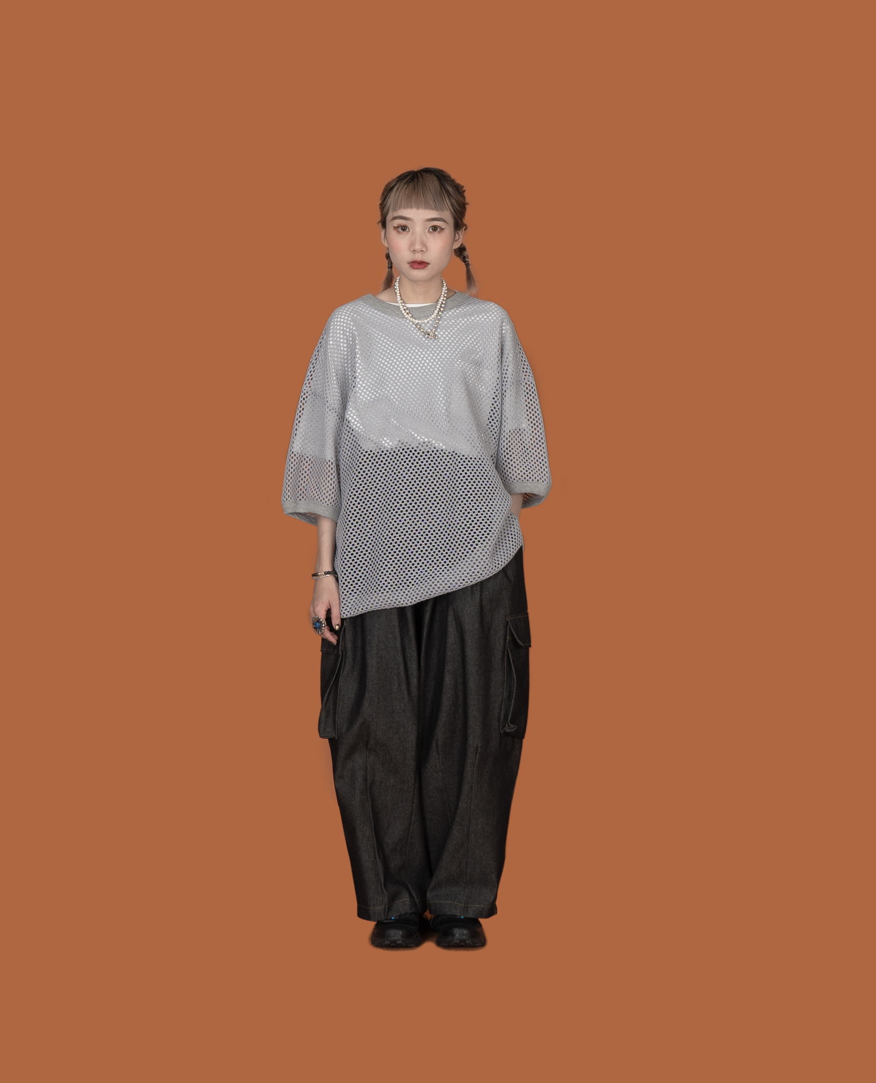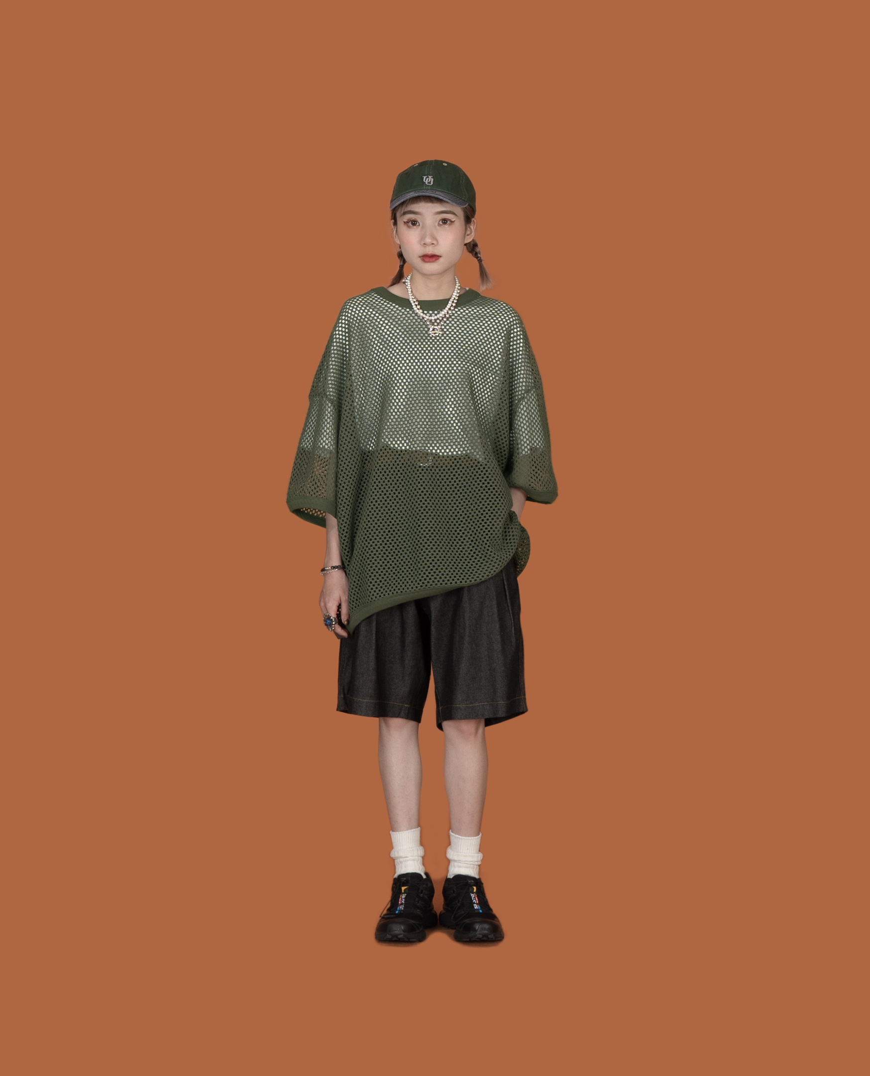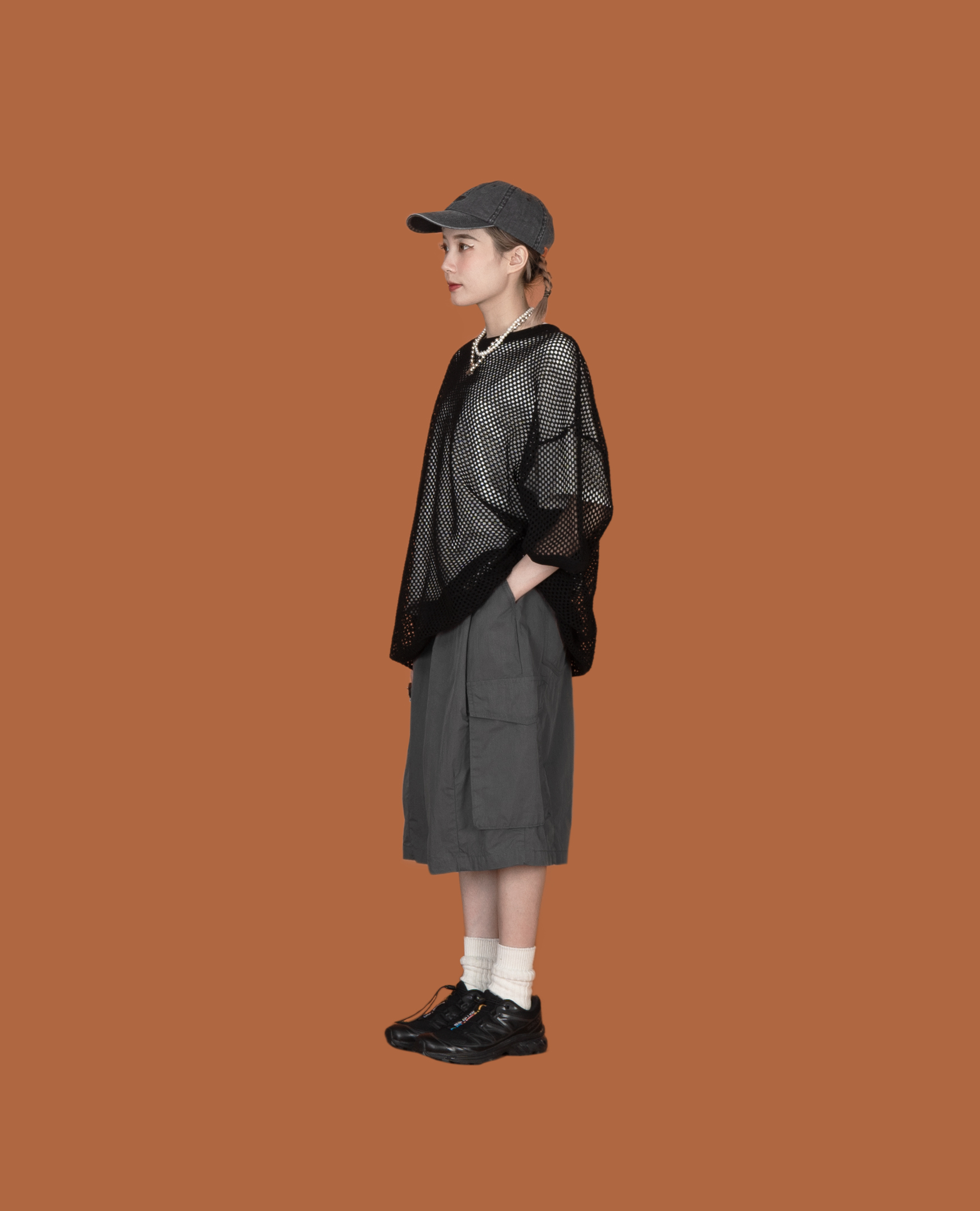 *看 Model 褲子:滑料可調腰膝下工作褲、後鬆緊前6摺裙、下車線工作褲、前4摺牛仔氣球褲、後鬆緊挺料前4摺短褲、寬帶牛仔洋裝