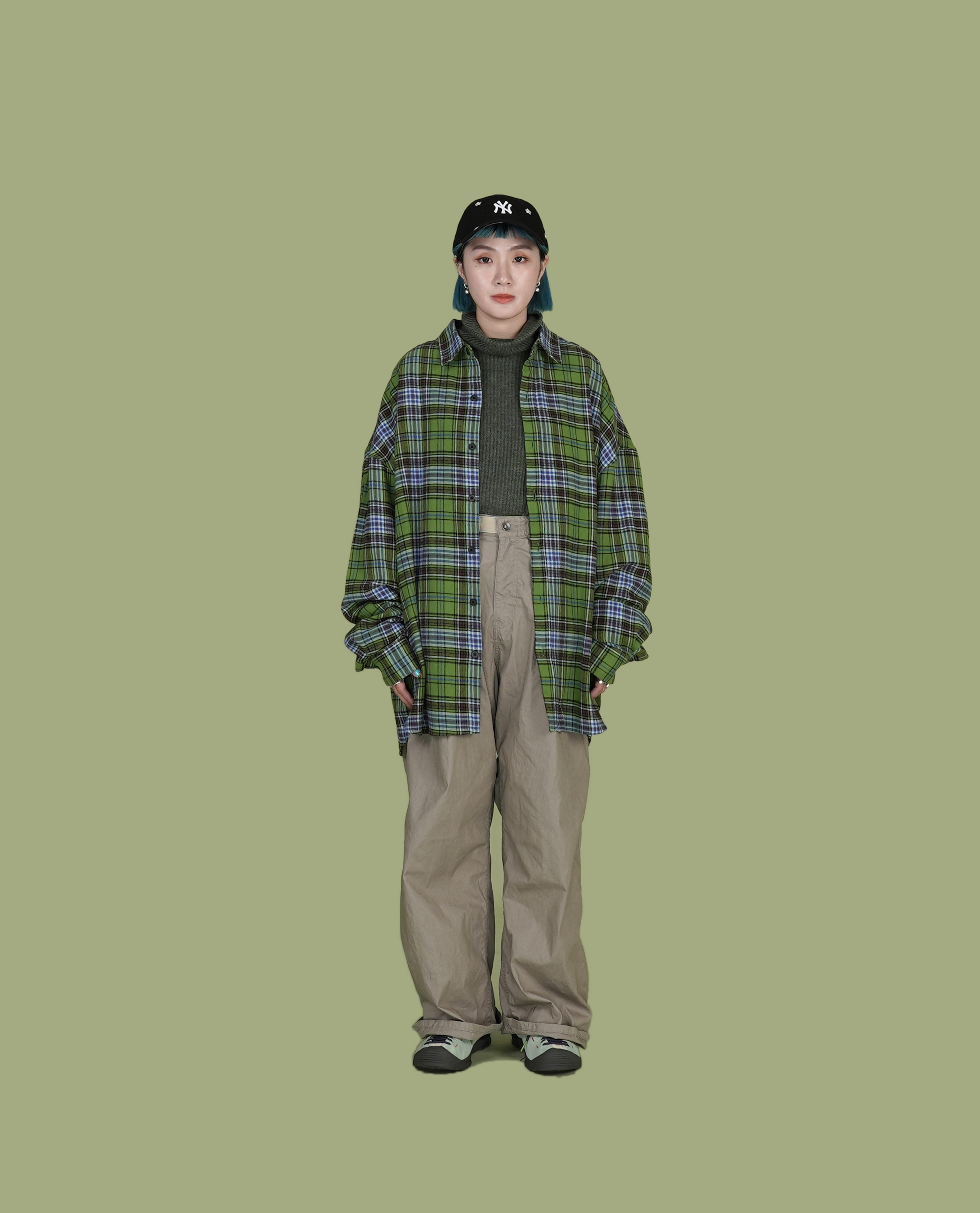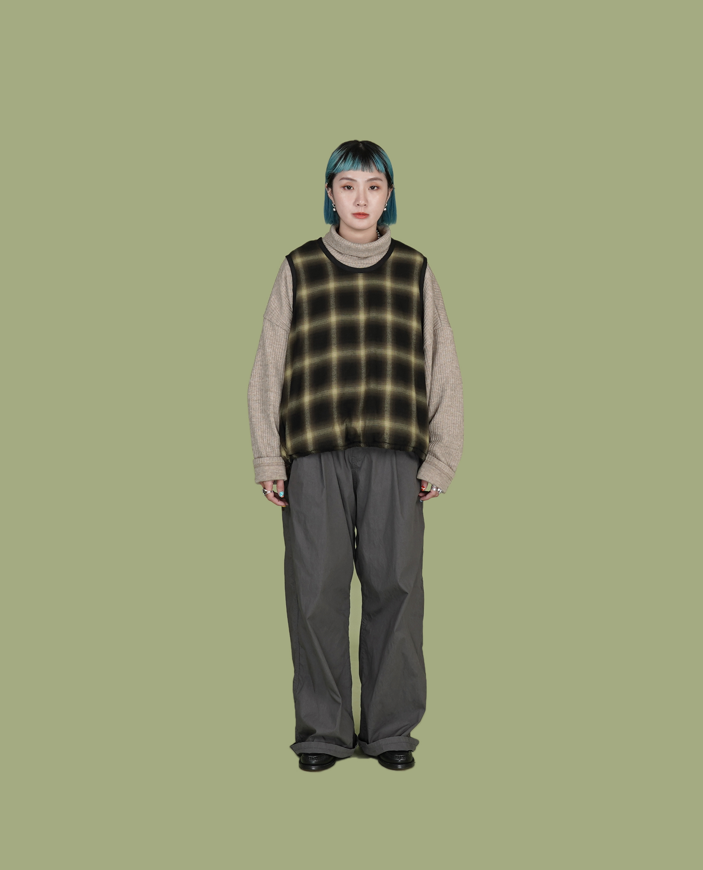 *看 Model 褲子:歐波医生日本製格紋綁繩雙面穿背心、落肩法蘭絨襯衫、高領彈性直紋針織t