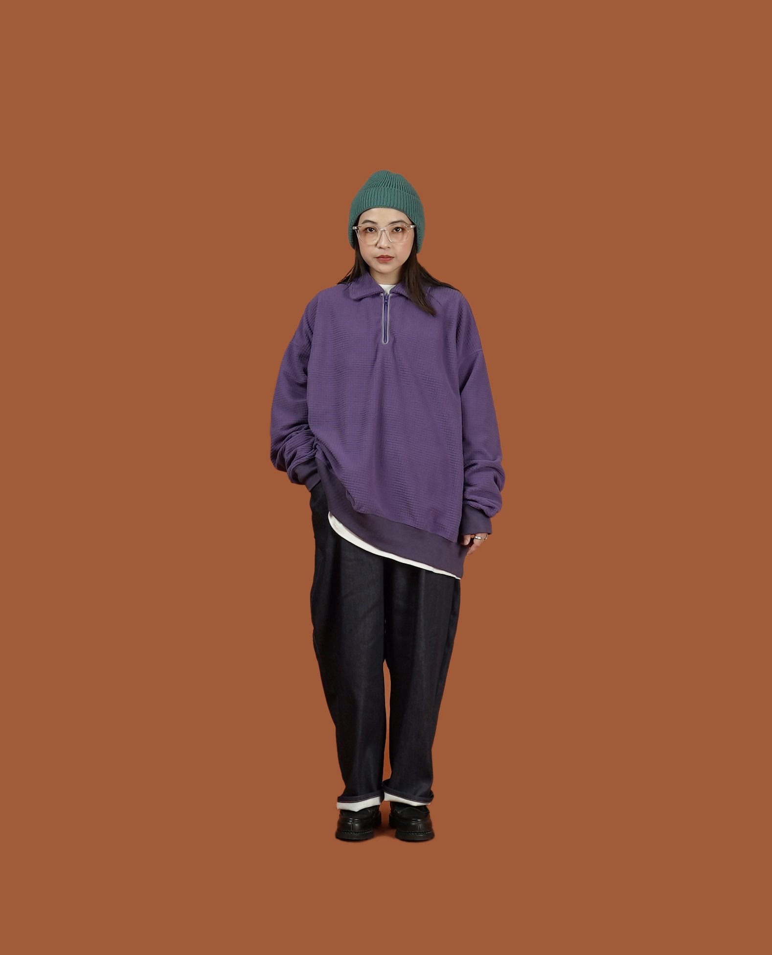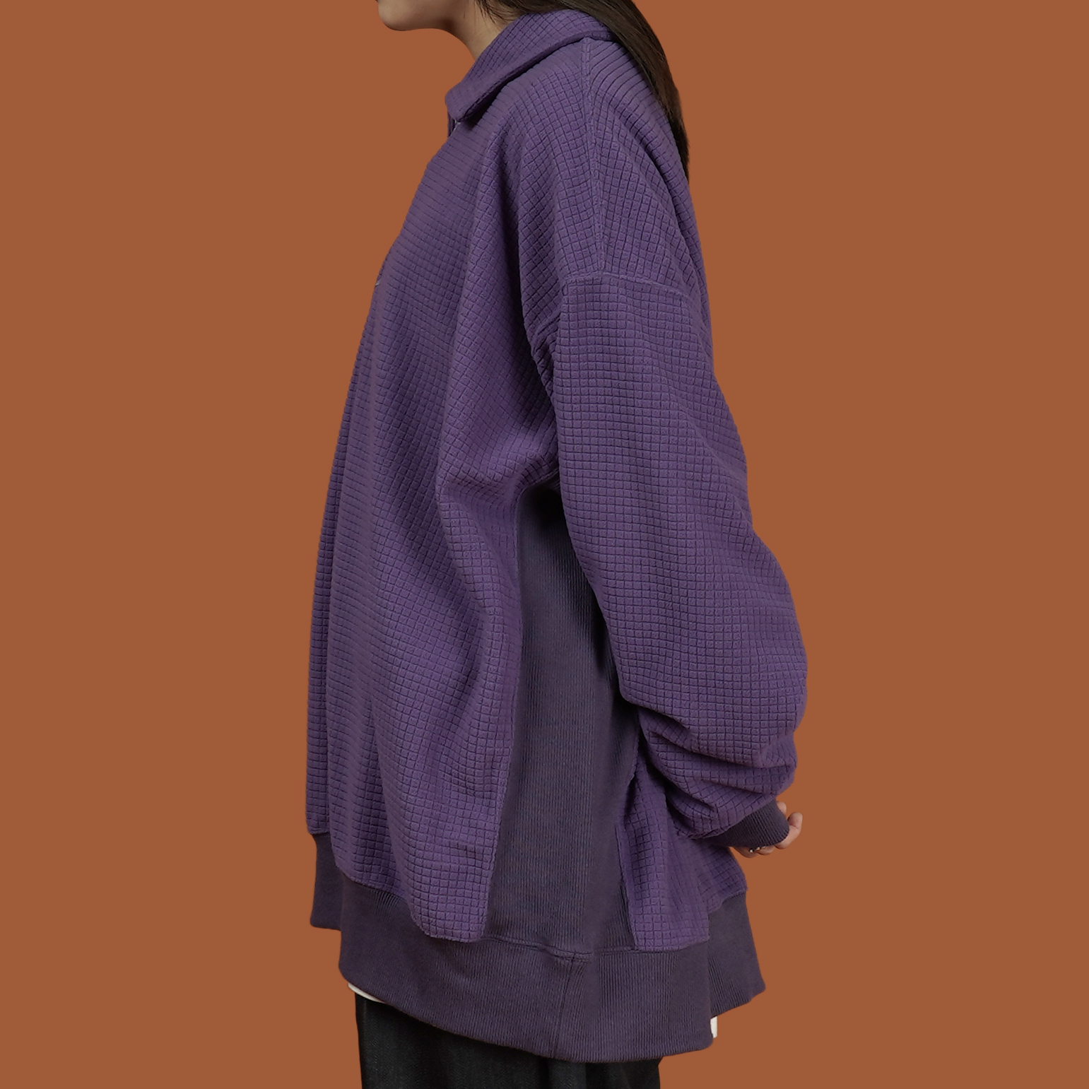 日本國內產類鬆餅格紋的特殊 Fleece 面料,因表面製作成塊狀格紋,觸摸上有著膨鬆手感,面料內裡是針織布面,穿著體感極佳。
