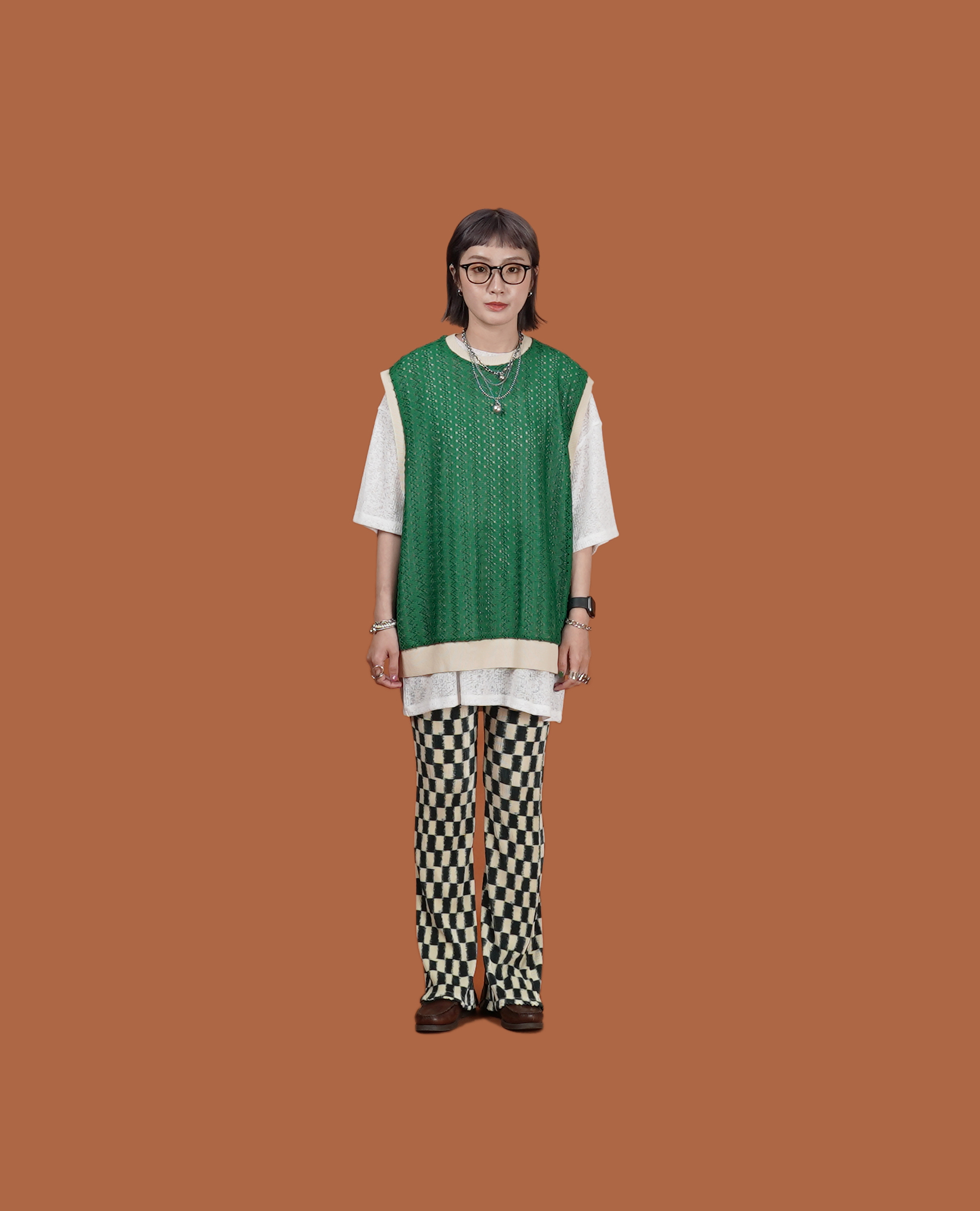 * Model 上衣:軟針織小領t鋸齒洞洞背心