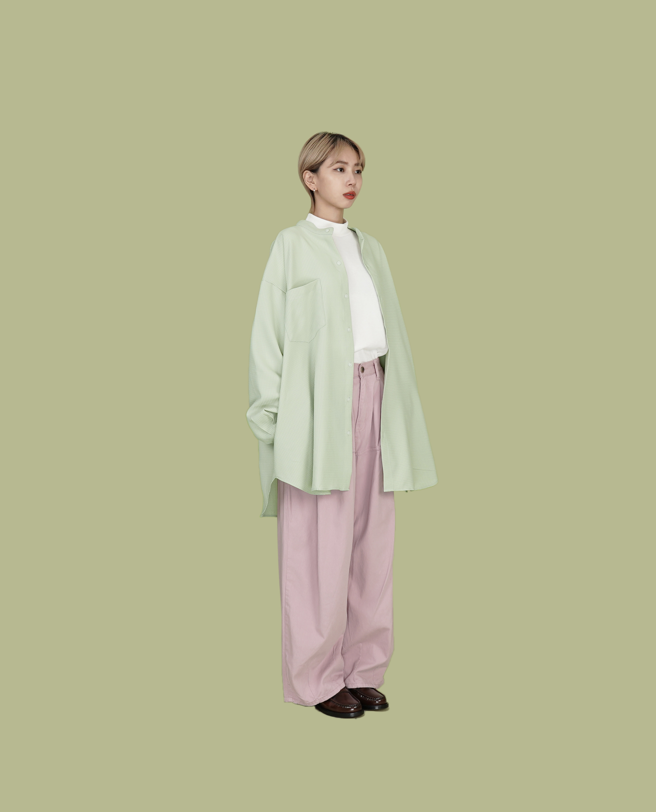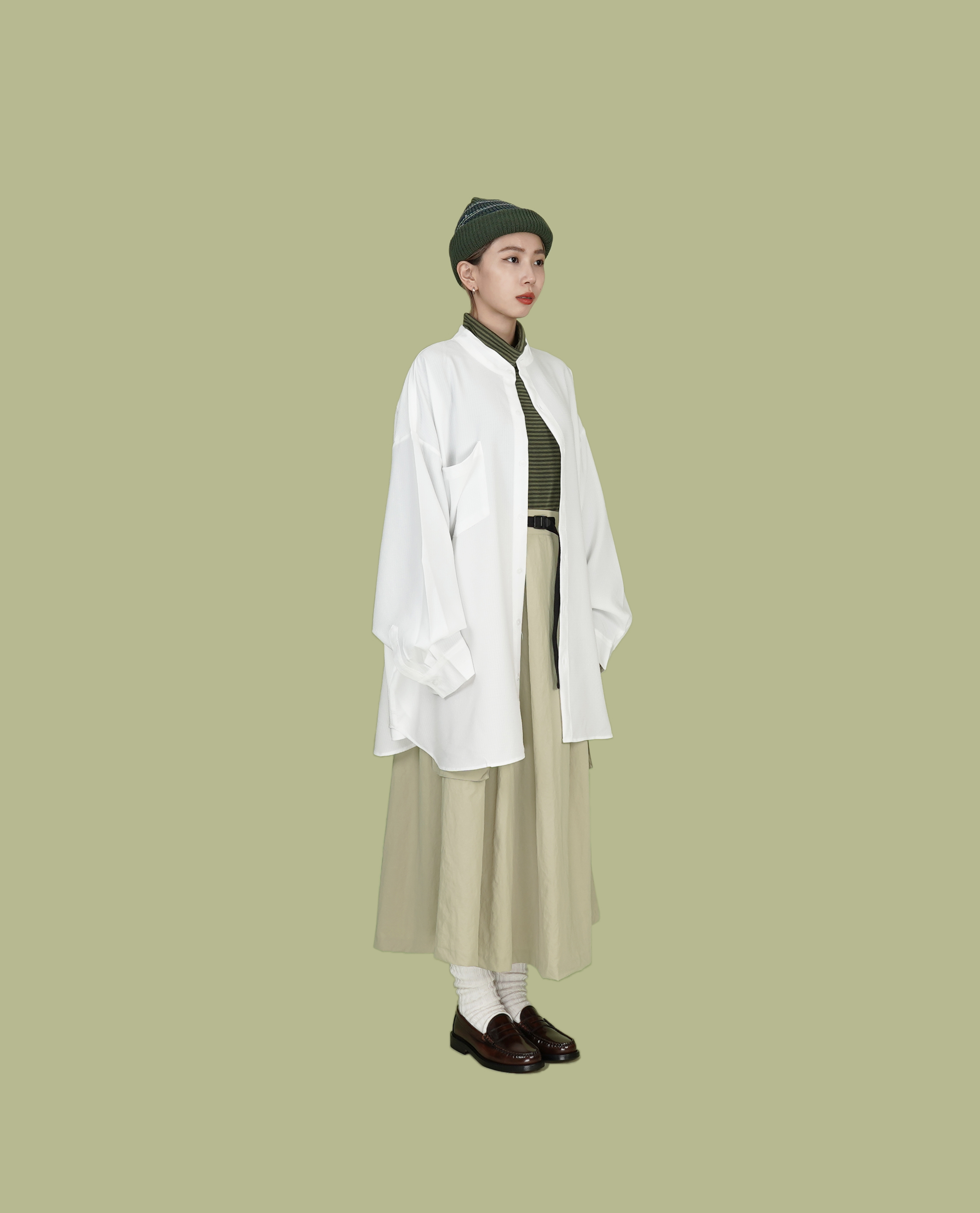 *看 Model 褲子:內短絨滑料腰可調下縮工作褲、前4摺高腰寬錐褲、拉繩工作長裙