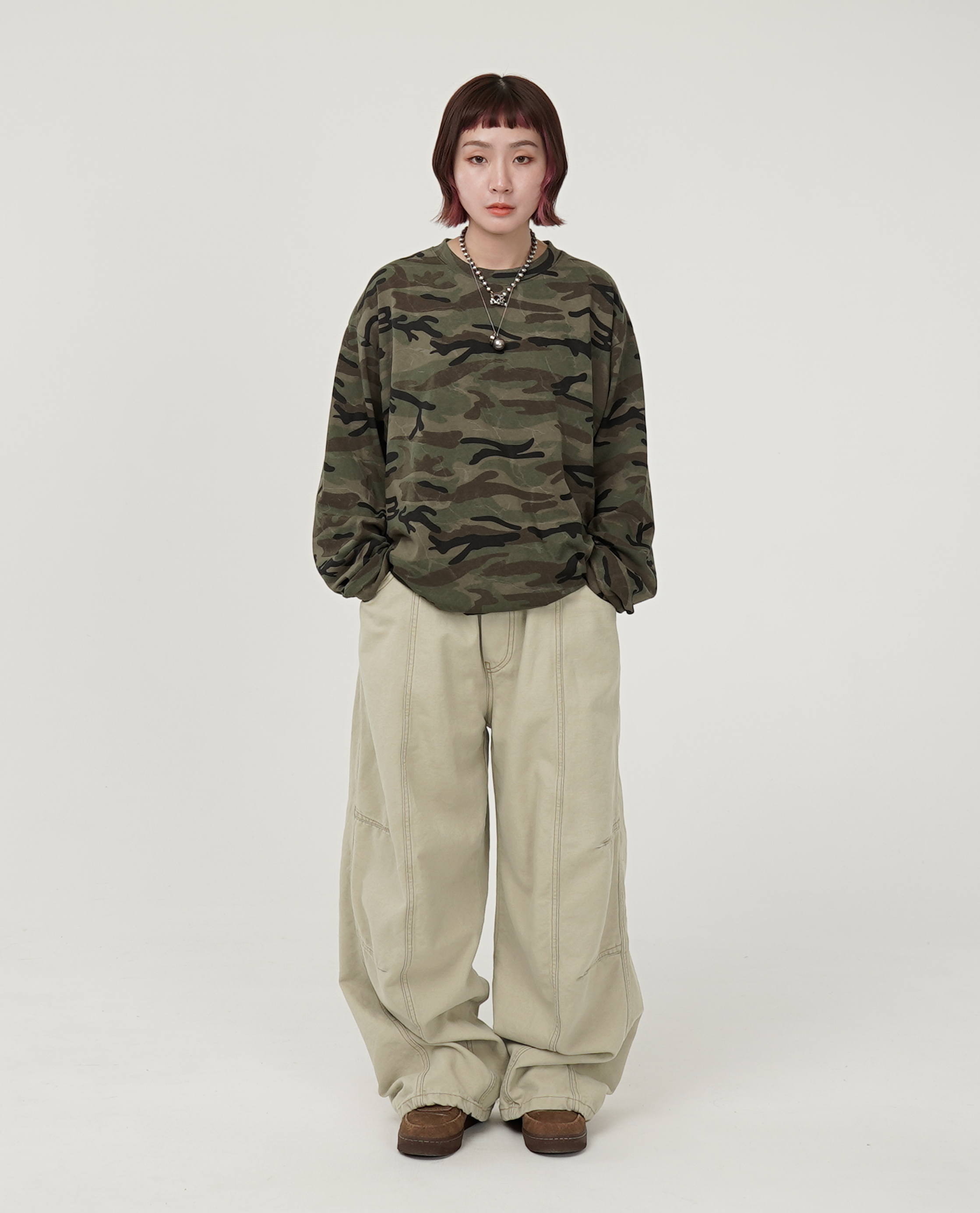 *看 Model 褲子:Passion Target Practice Tracksuit Jogger - 25SS、膝下刷色前摺牛仔、鬆緊雙側車線直筒褲