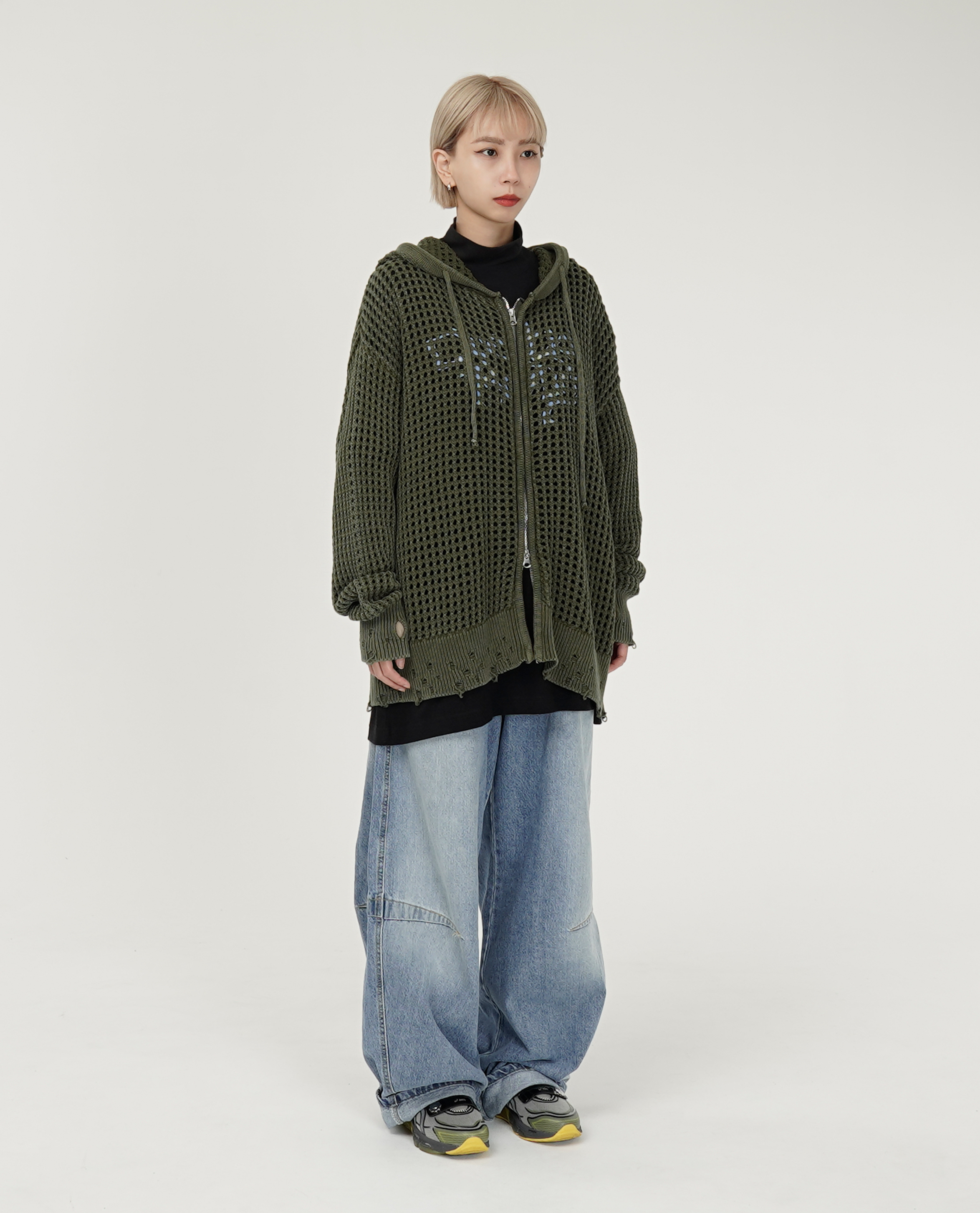 *看 Model 褲子:樹枝迷彩工作褲、淺藍刷白膝雙車線牛仔