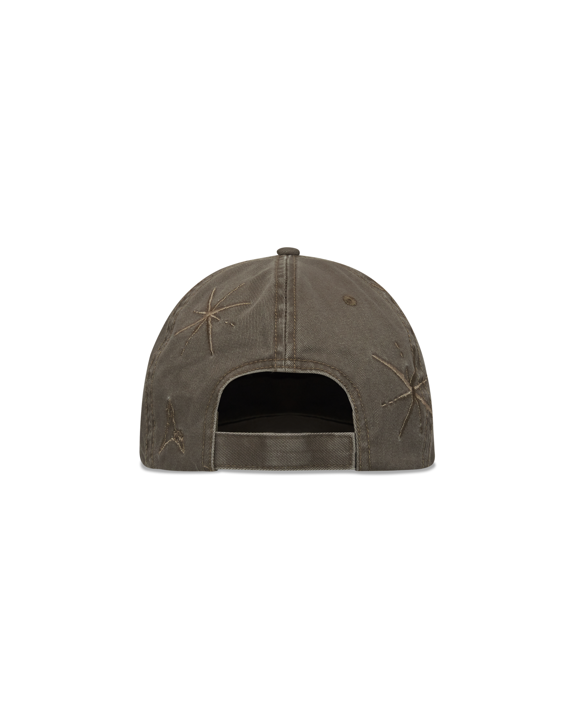 Ryli 刺繡六片式帽款 採用 100% 純棉斜紋布製成,布料耐用並帶有自然舊化質感的柔軟觸感。結構感帽型設計,搭配特殊原切預塑帽簷,能與太陽眼鏡完美貼合不干擾配戴。整體佈滿刺繡圖像細節,層次豐富且極具辨識度。