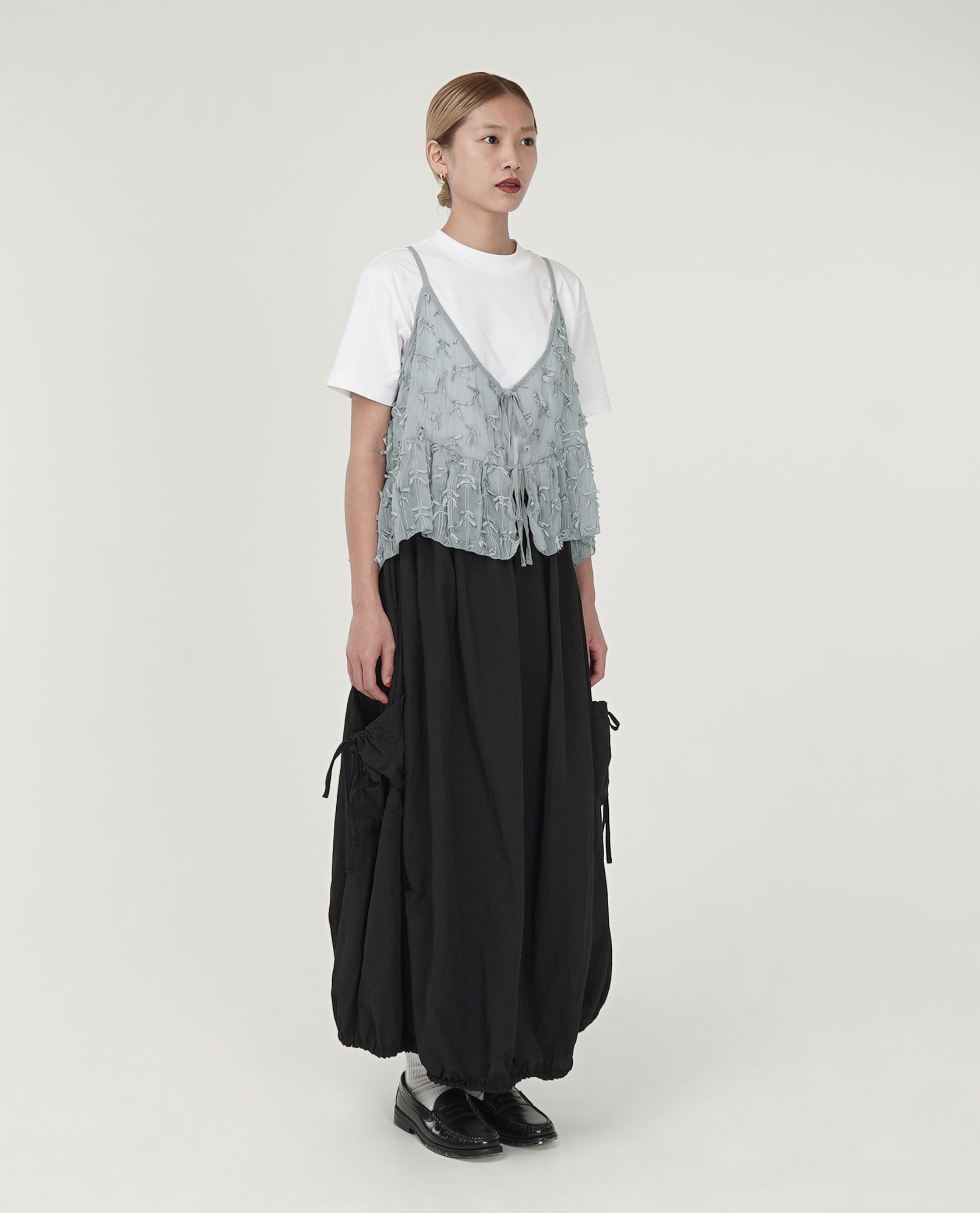 * Model 上衣:後綁帶寬肩帶背心細肩蝴蝶結綁繩背心小立領透明拉鍊外套
