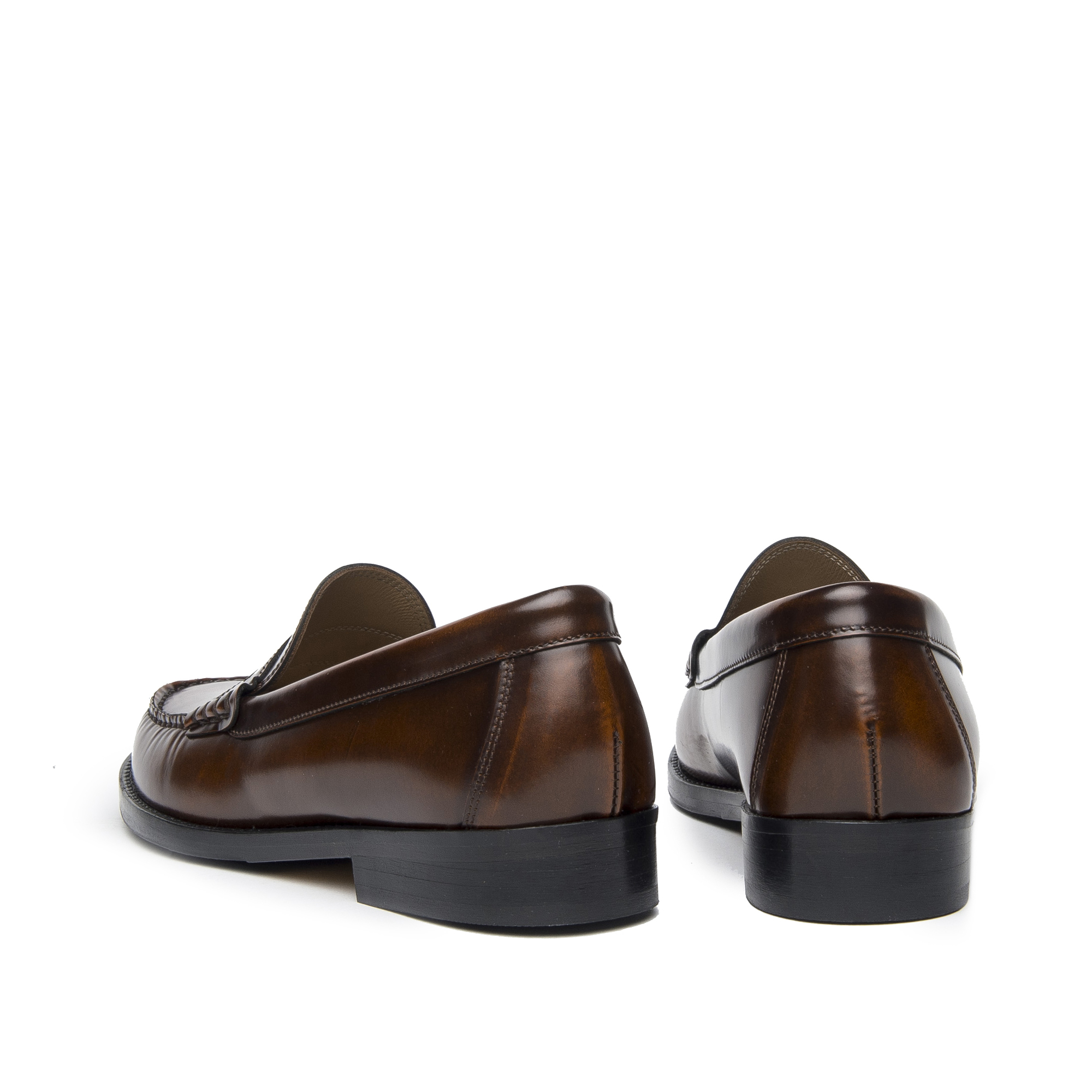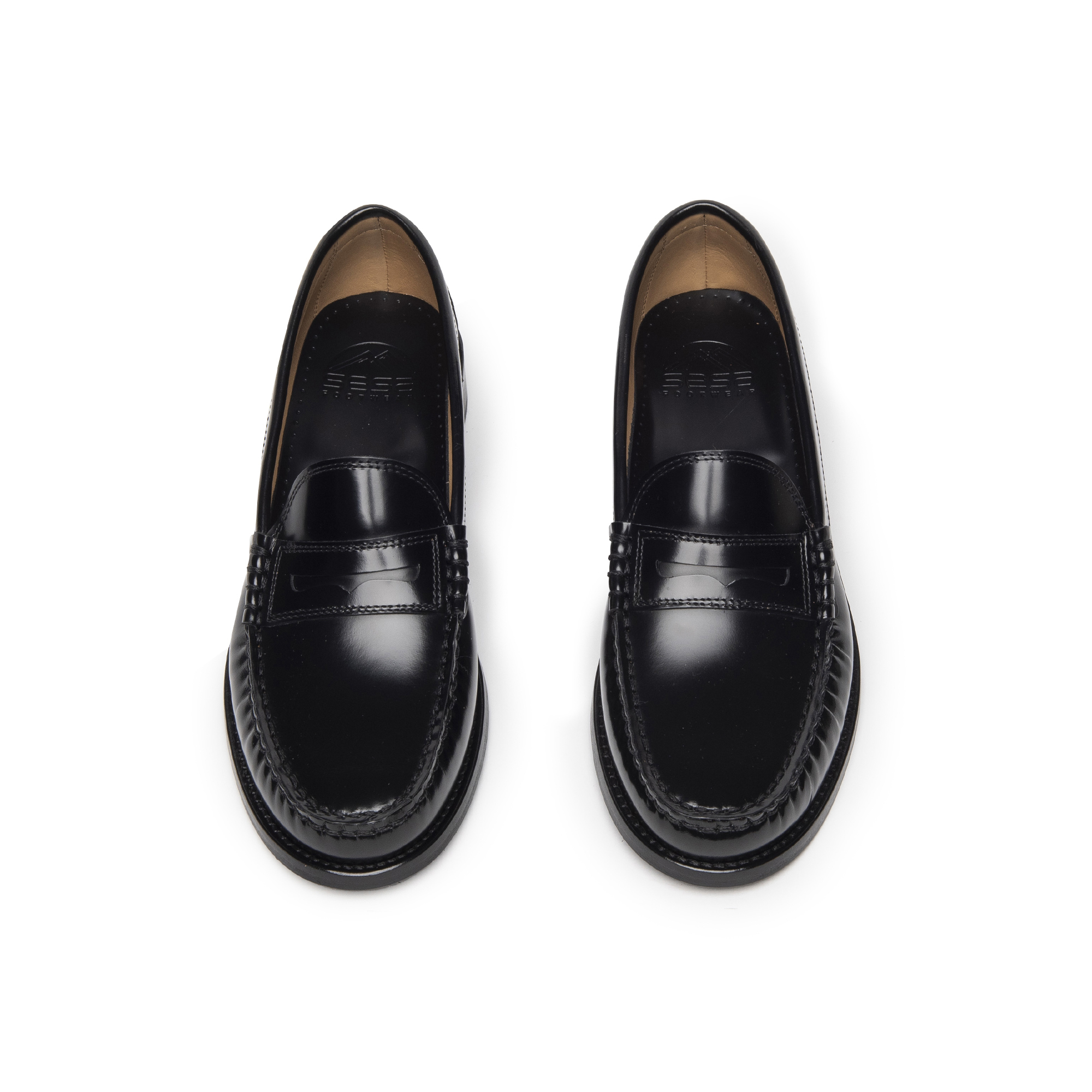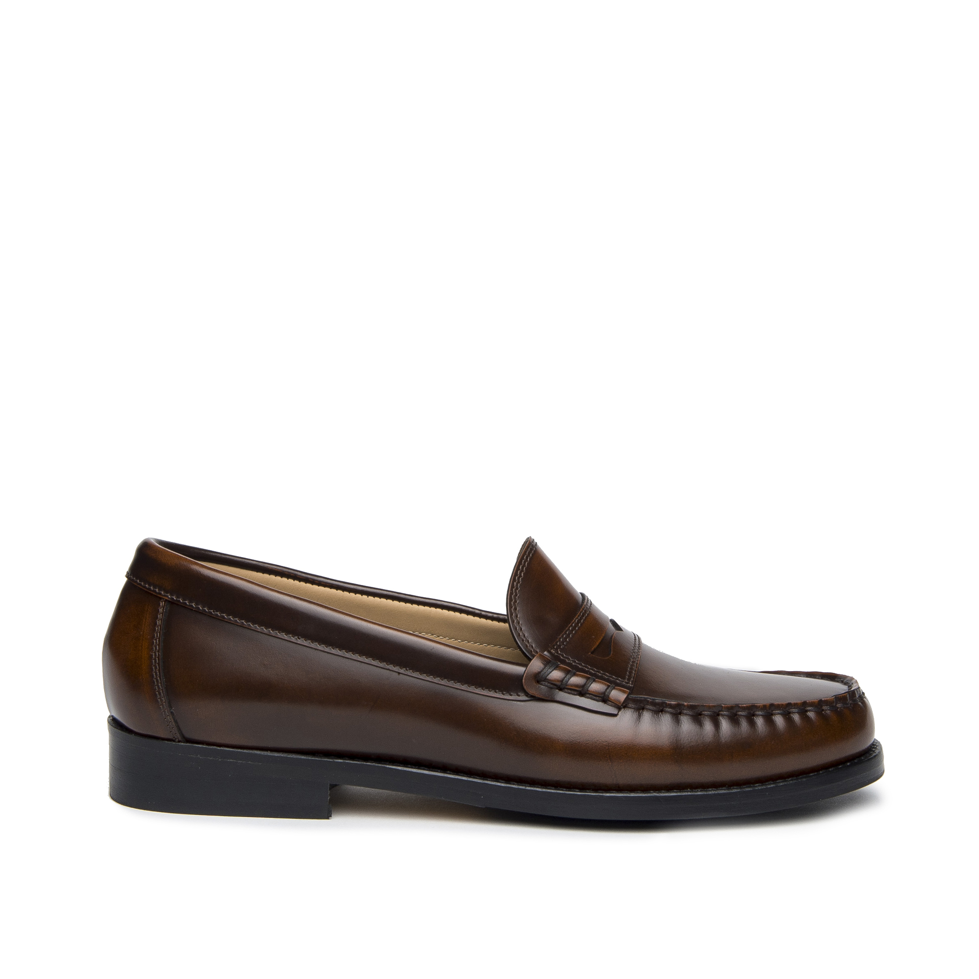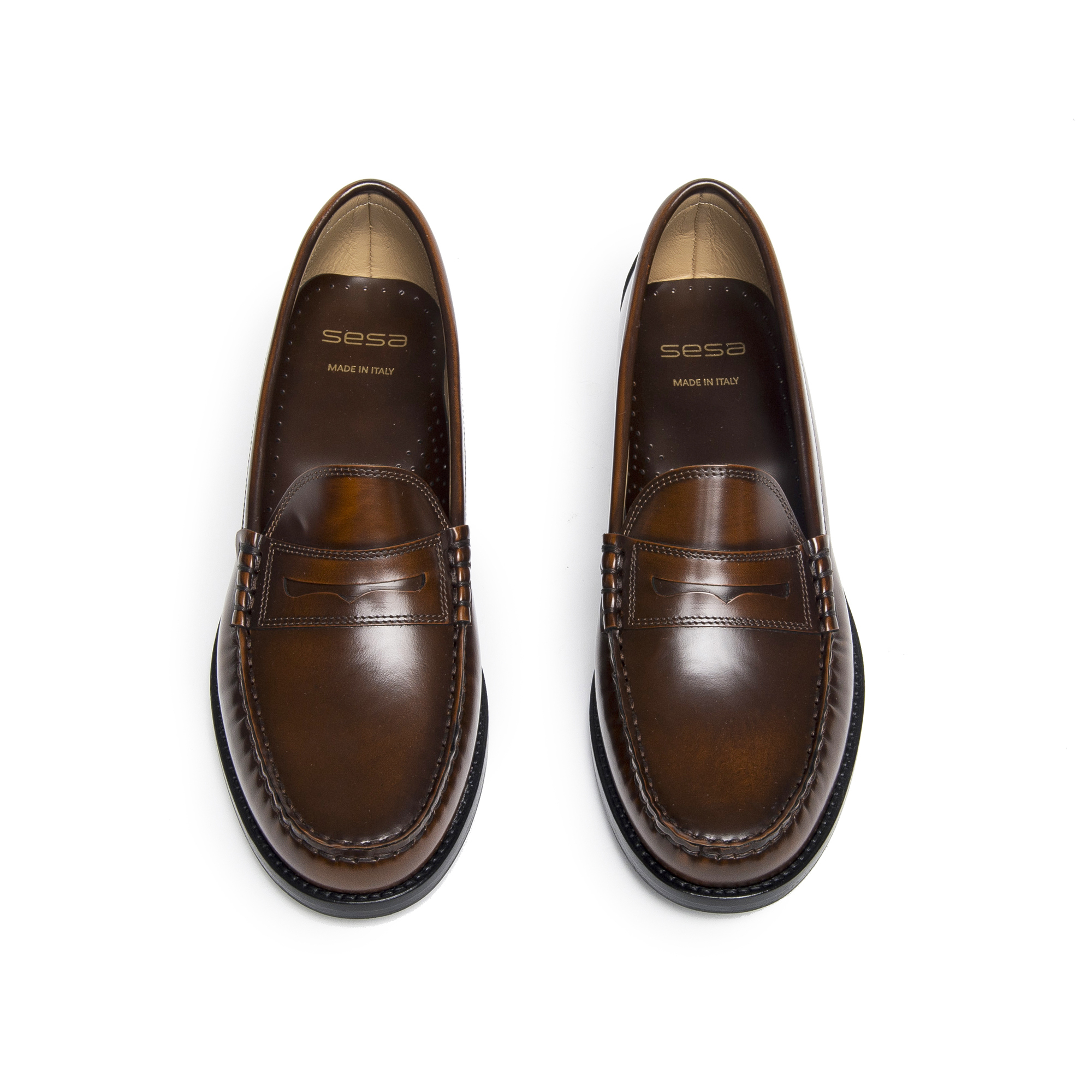 刷光牛皮,義大利手工縫製的便士樂福鞋,小牛皮內襯,大底採用blake stitch手工縫製皮底,車線外露,非常經典的義式皮鞋。