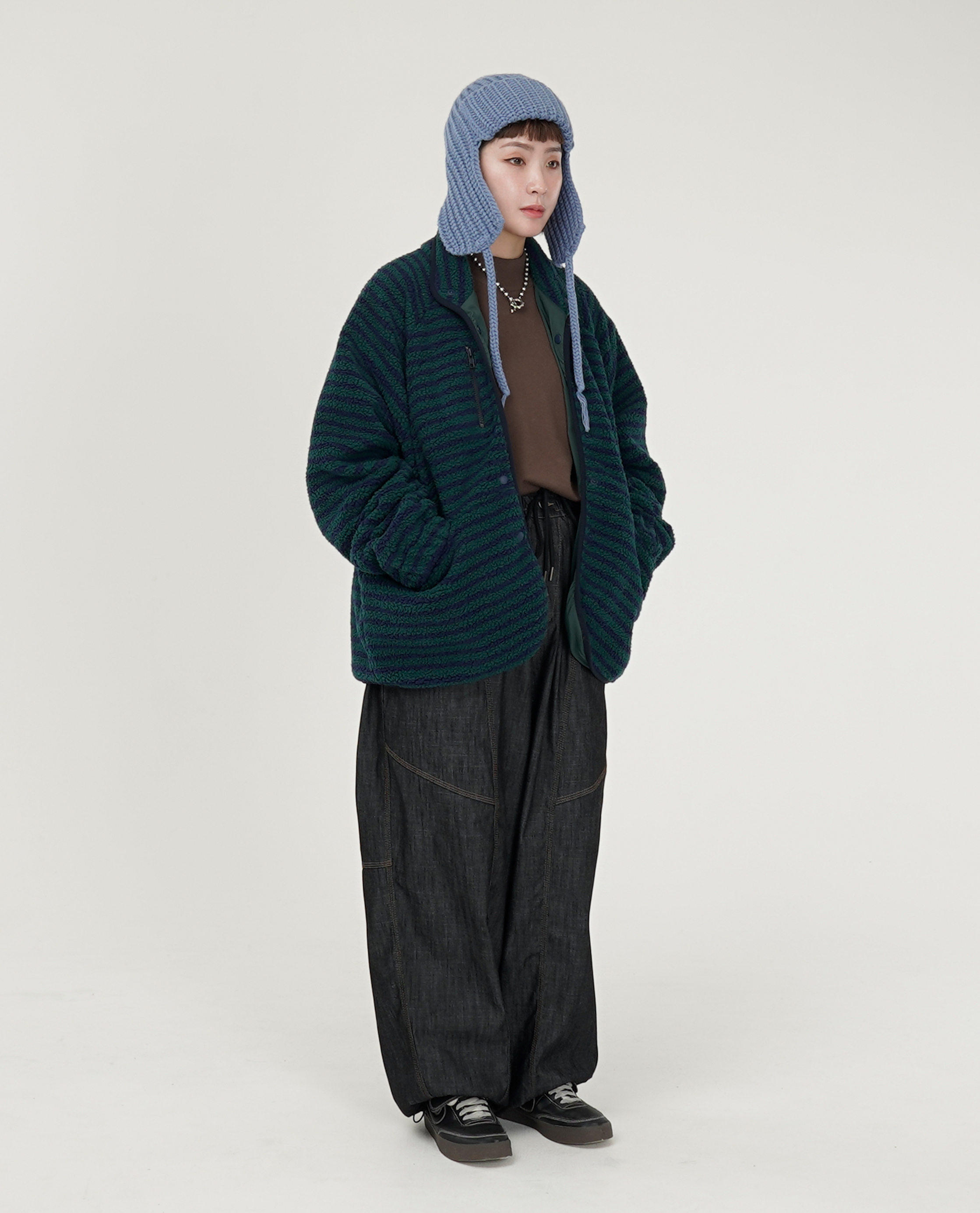 *看 Model 褲子:刷色鬆緊腰氣球牛仔、原色綁繩繭型下可縮牛仔