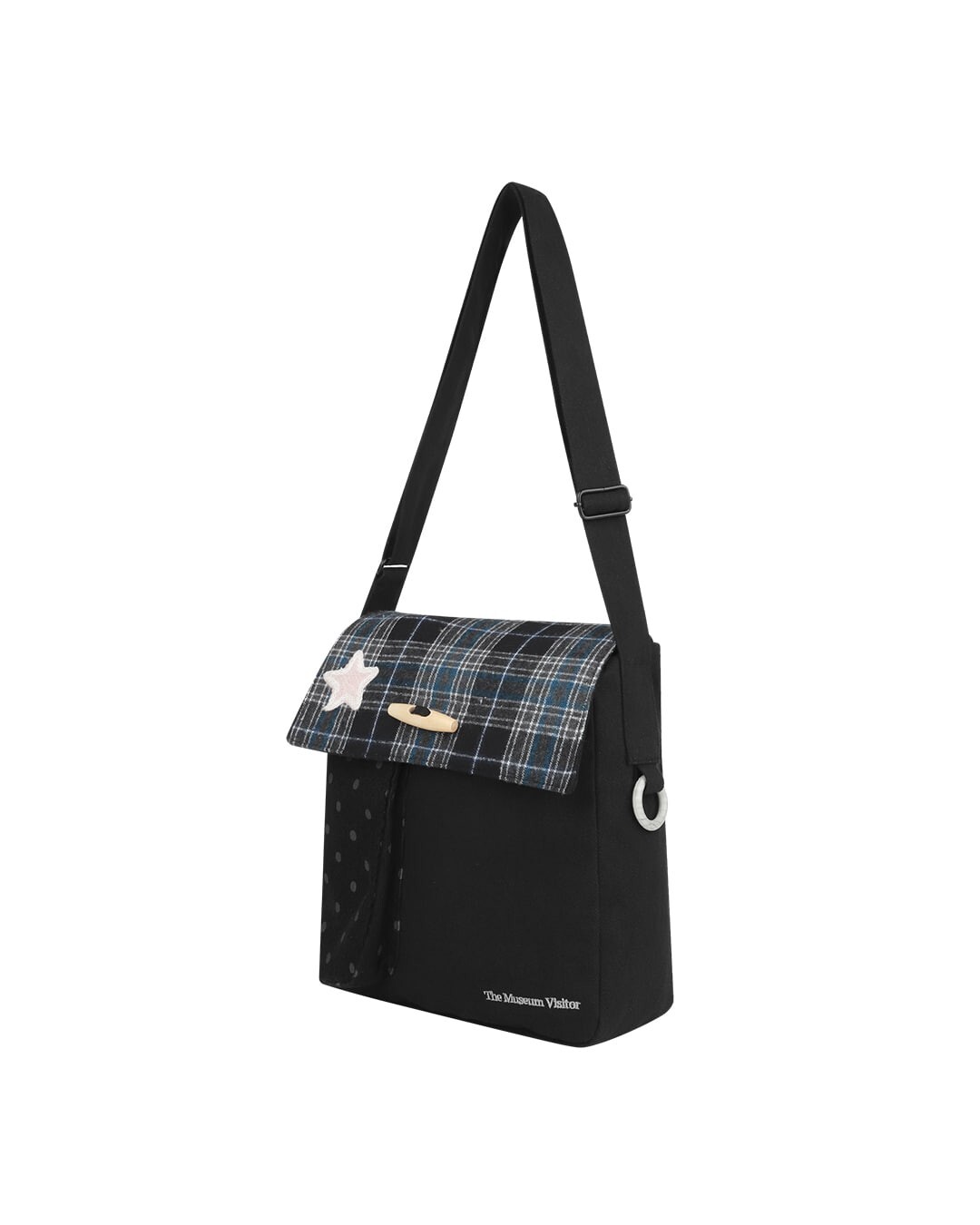 多種布料拼接 / 獨特的牛角扣 / 正面刺繡logo / 側邊多功能木質O型環 / 可調節長度交叉肩帶