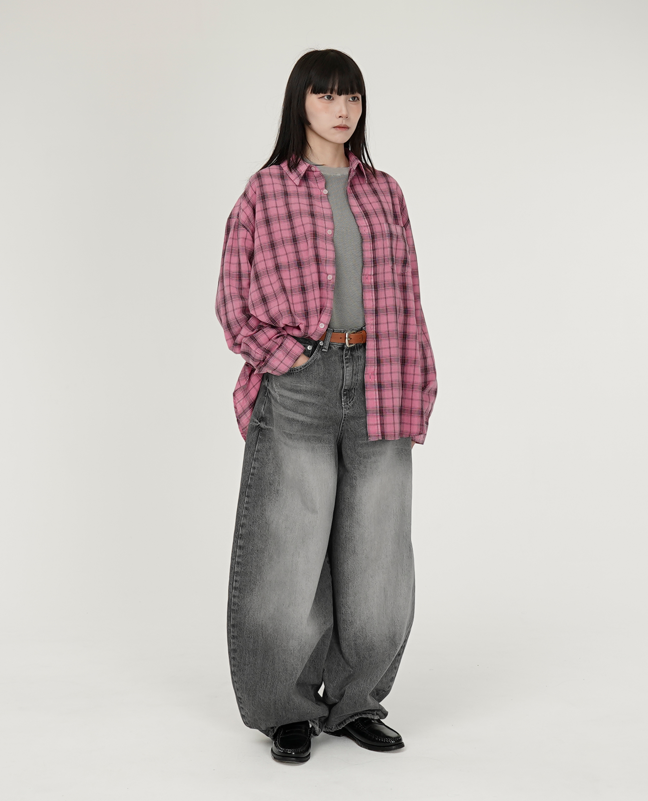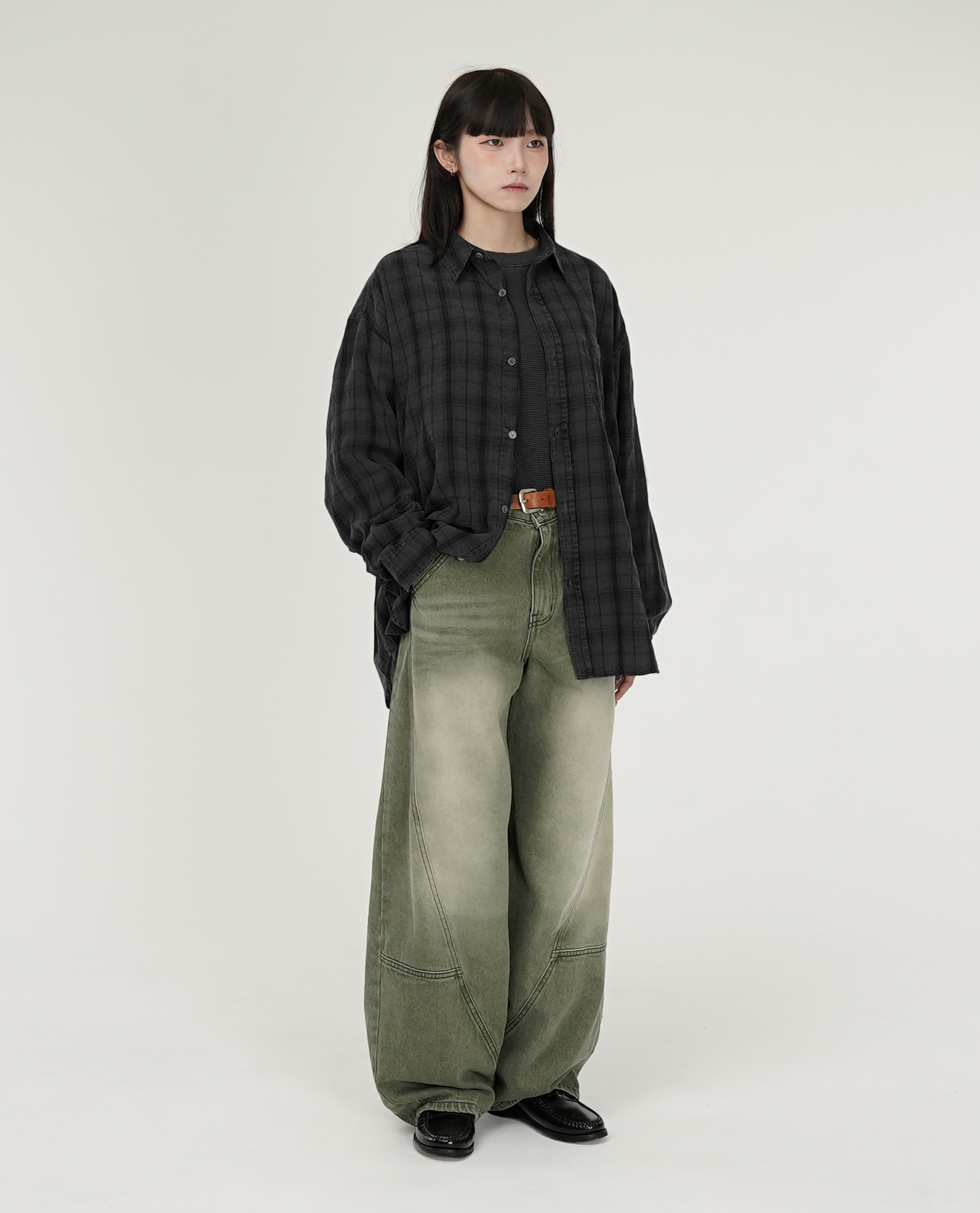 *看 Model 褲子:鬆緊水洗膝打摺薄棉褲、弧型車線套色水洗牛仔、大寬鬆小破壞牛仔