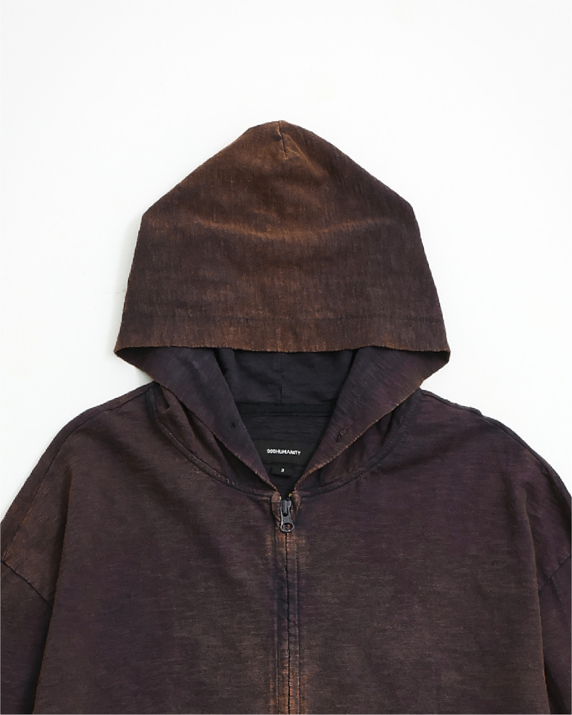 999HUMANITY BLEACHED SLUB HOODED ZIP UP 設計重點: